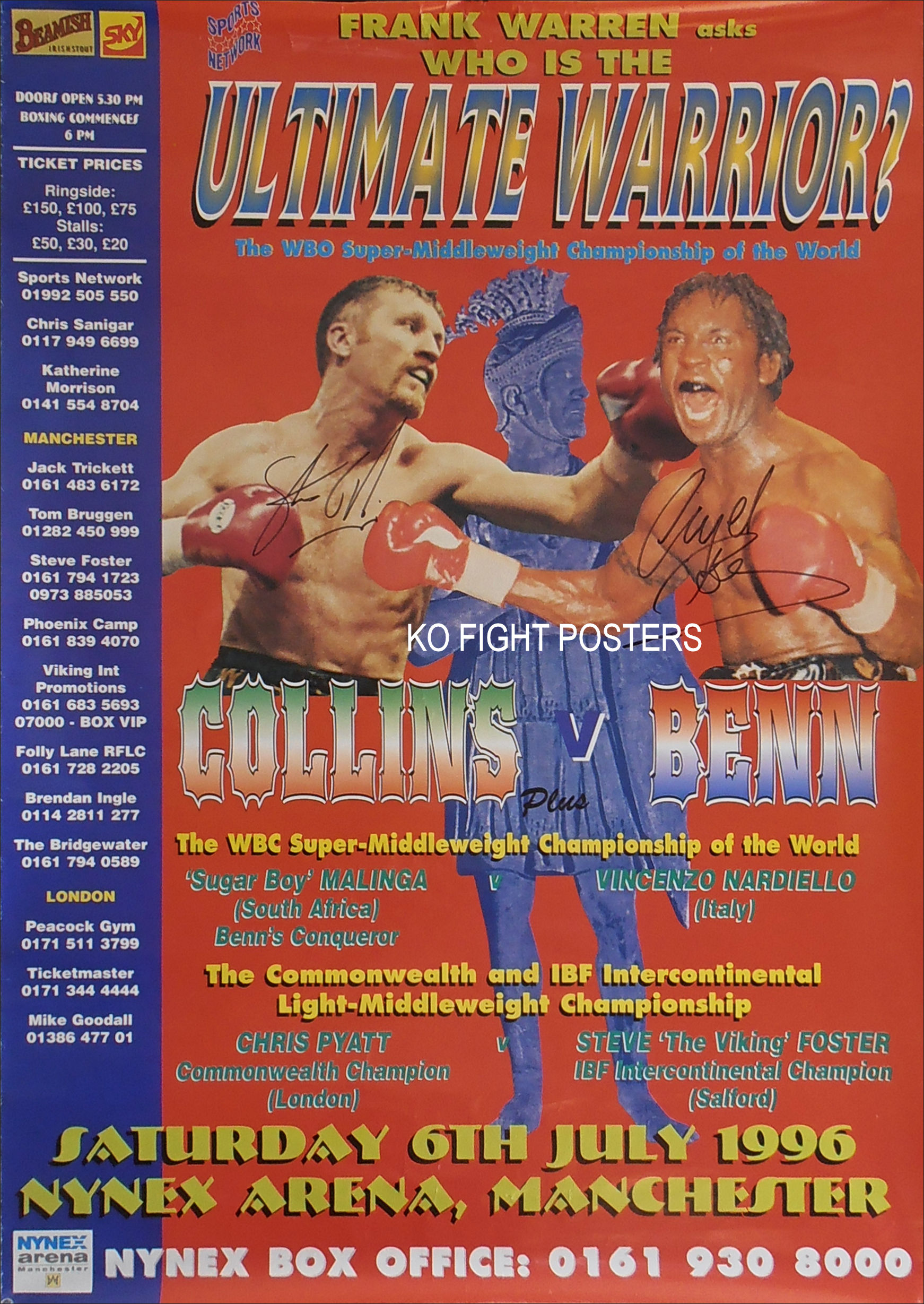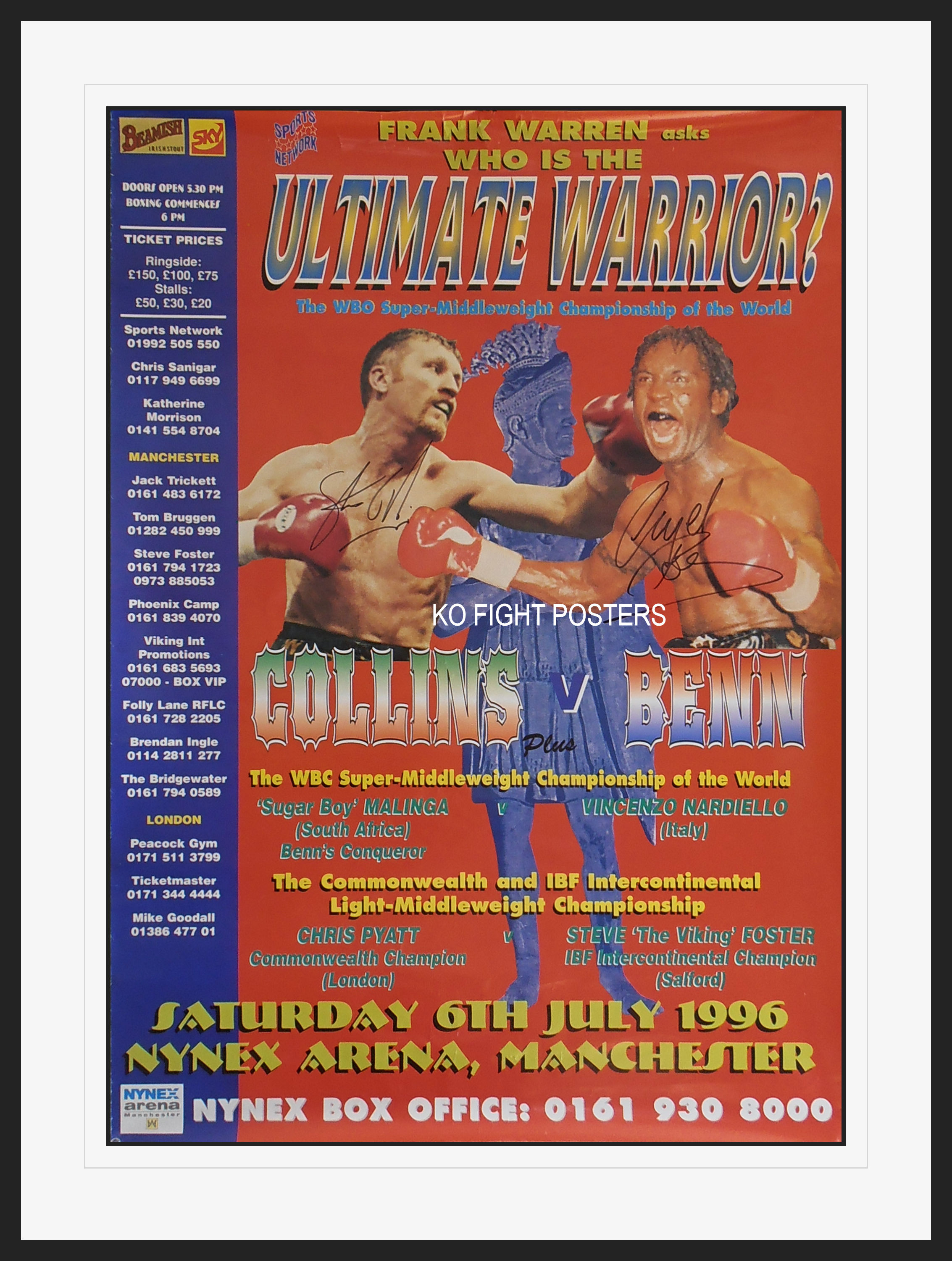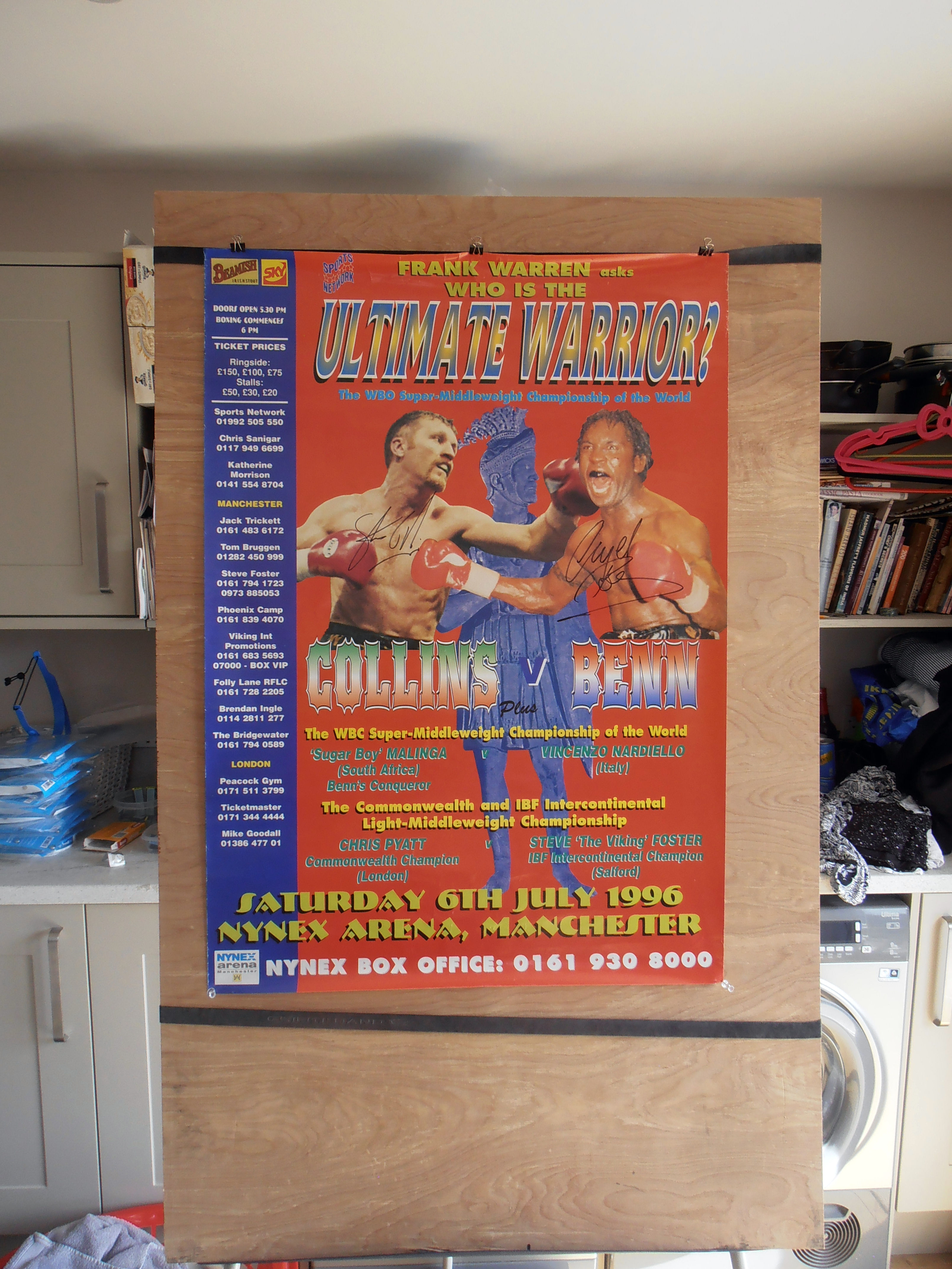This poster has been signed by Nigel Benn & Steve Collins & is accompanied by a lifetime guarantee 'letter of authenticity' from KOfightposters.