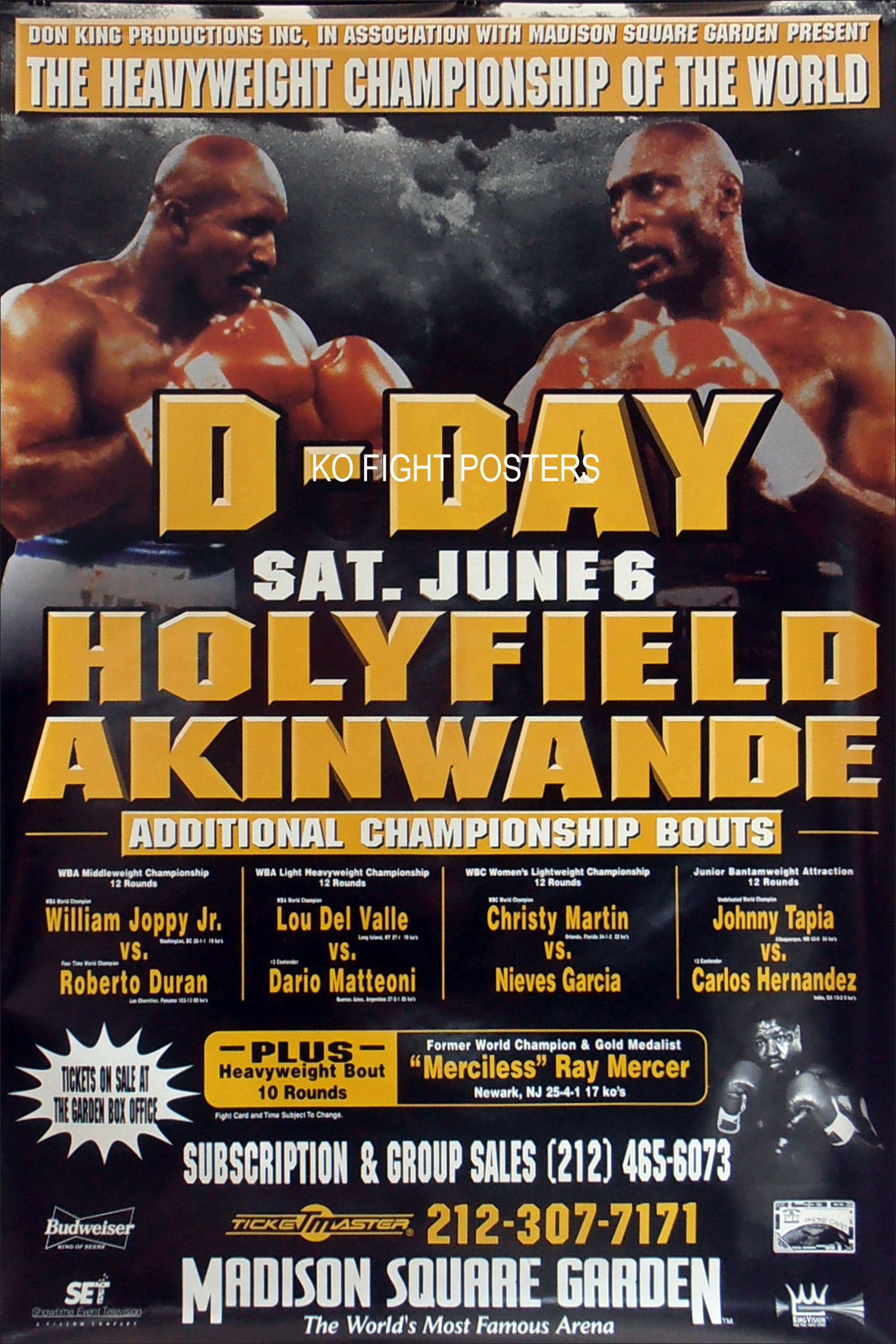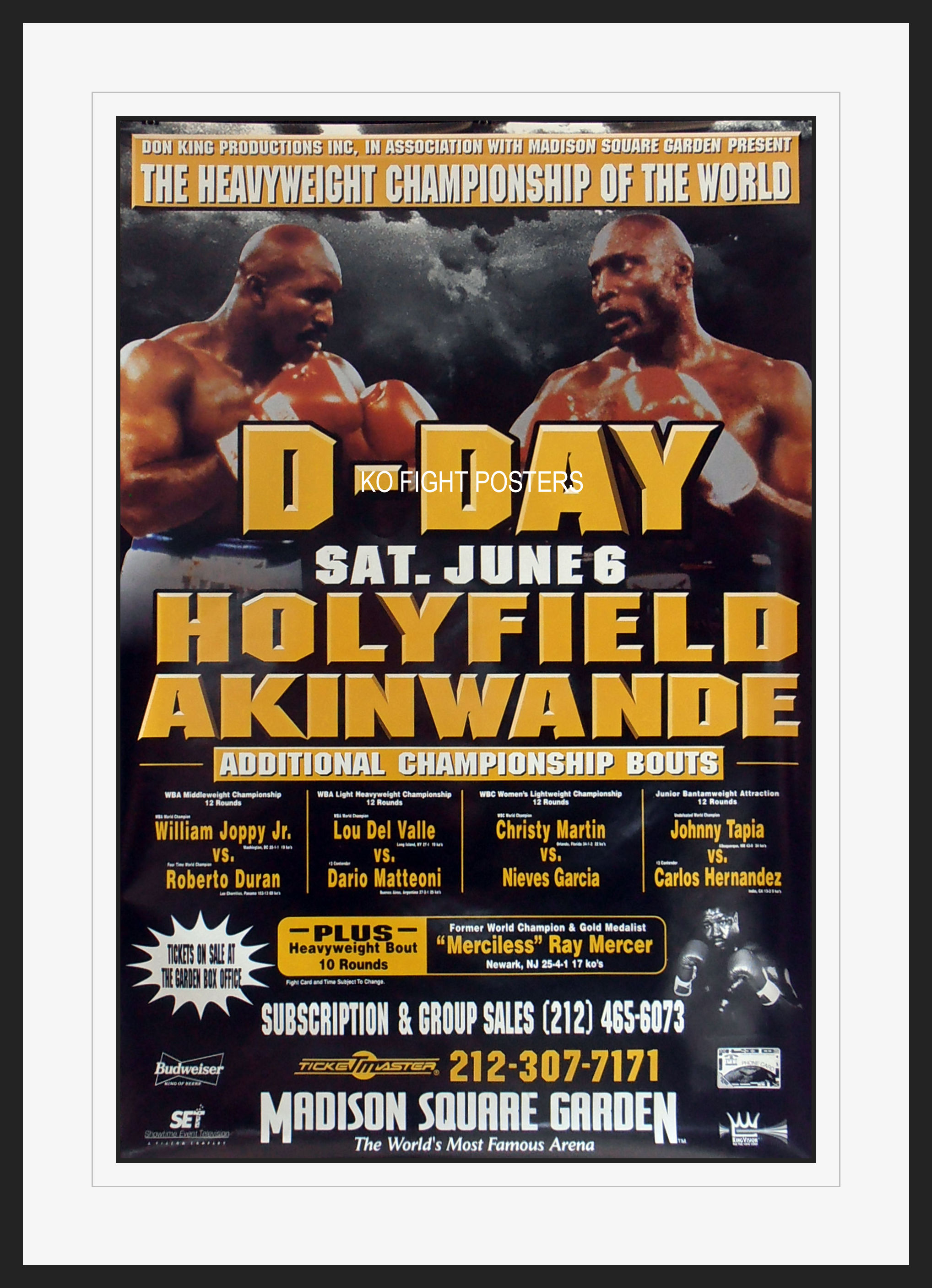 Description : Here we have an original official onsite boxing fight poster for the world heavyweight championship title bout to be held at Madison Square Garden, New York, USA, 6th June 1998.