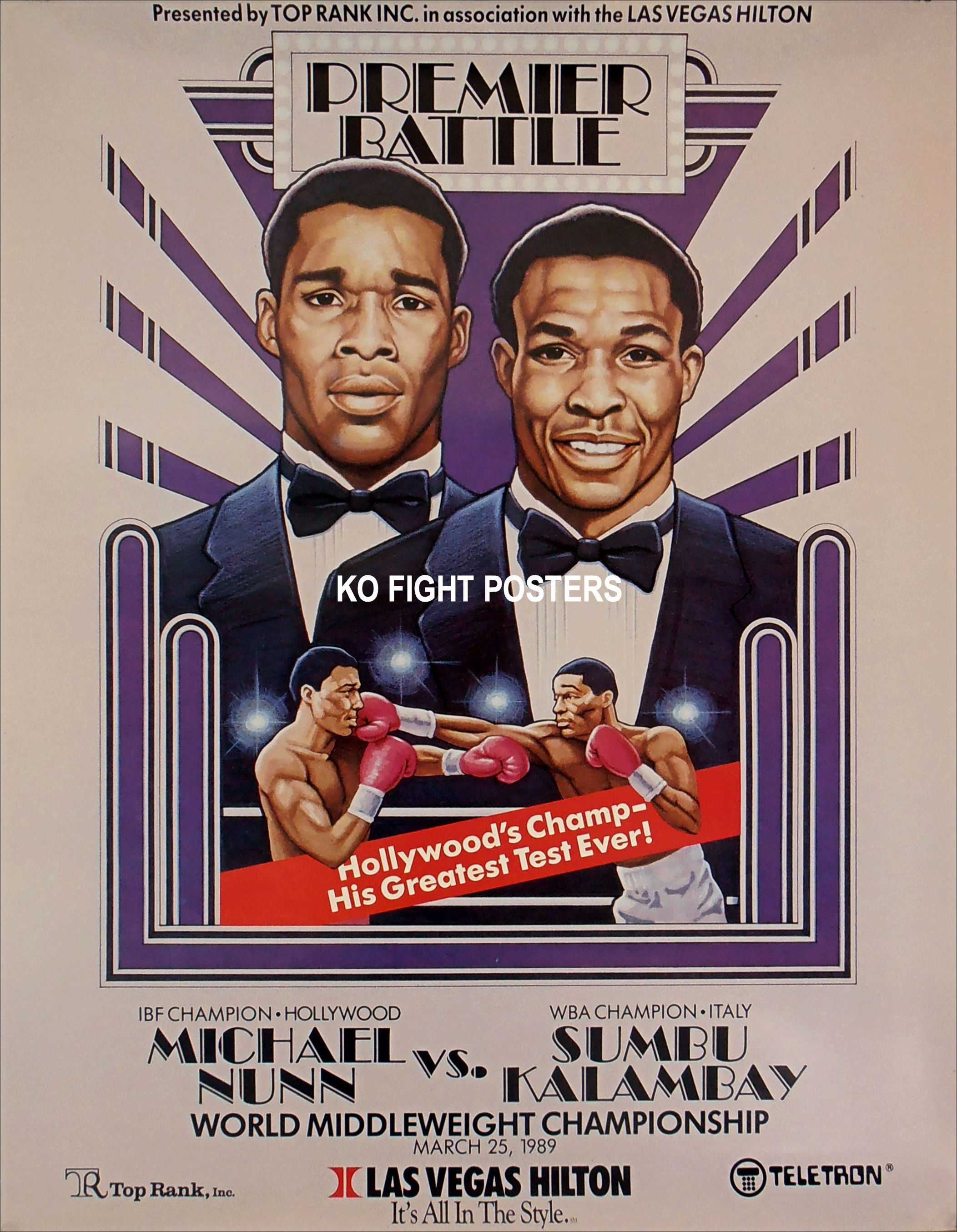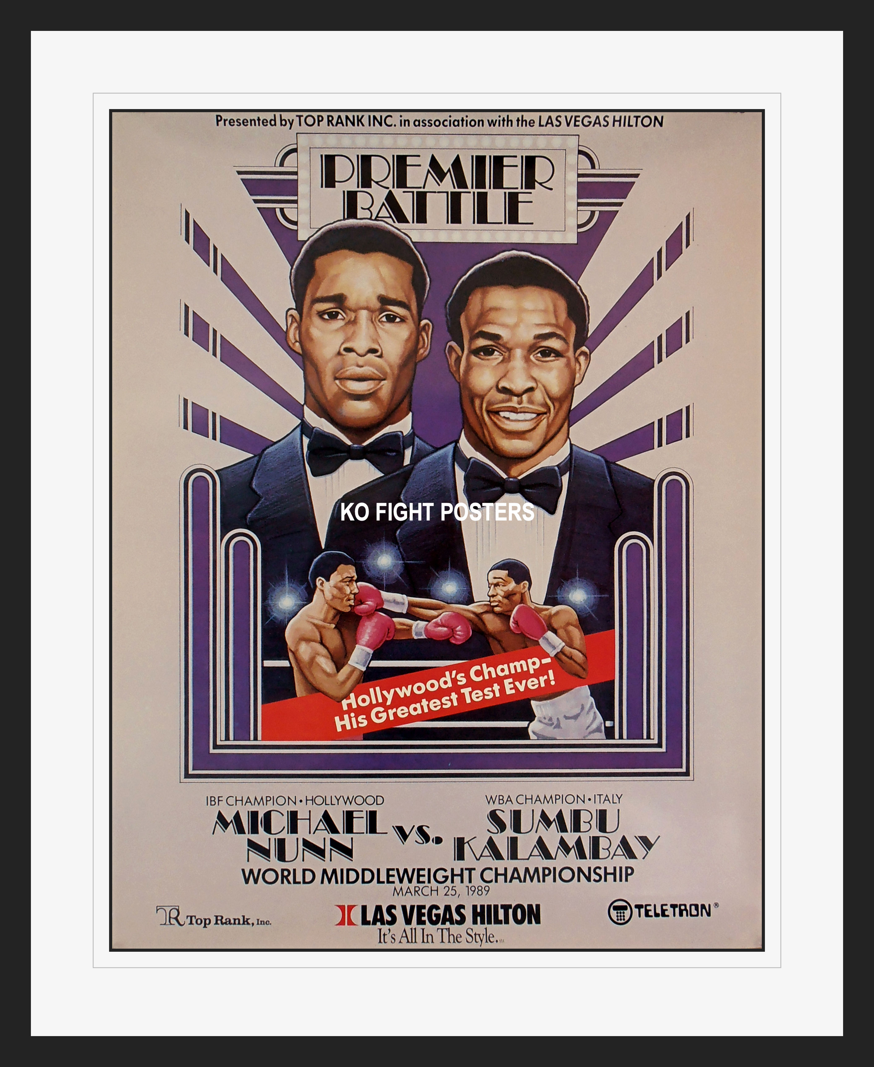 Description : Here we have an original onsite boxing fight poster for the IBF world middleweight championship title bout held at the Las Vegas Hilton, Las Vegas, Nevada, USA, 25th March 1989.