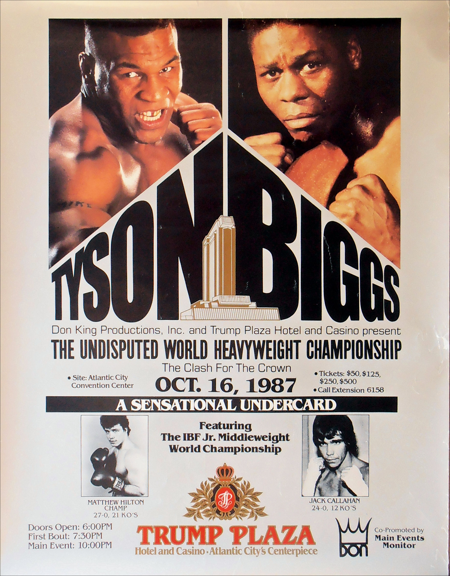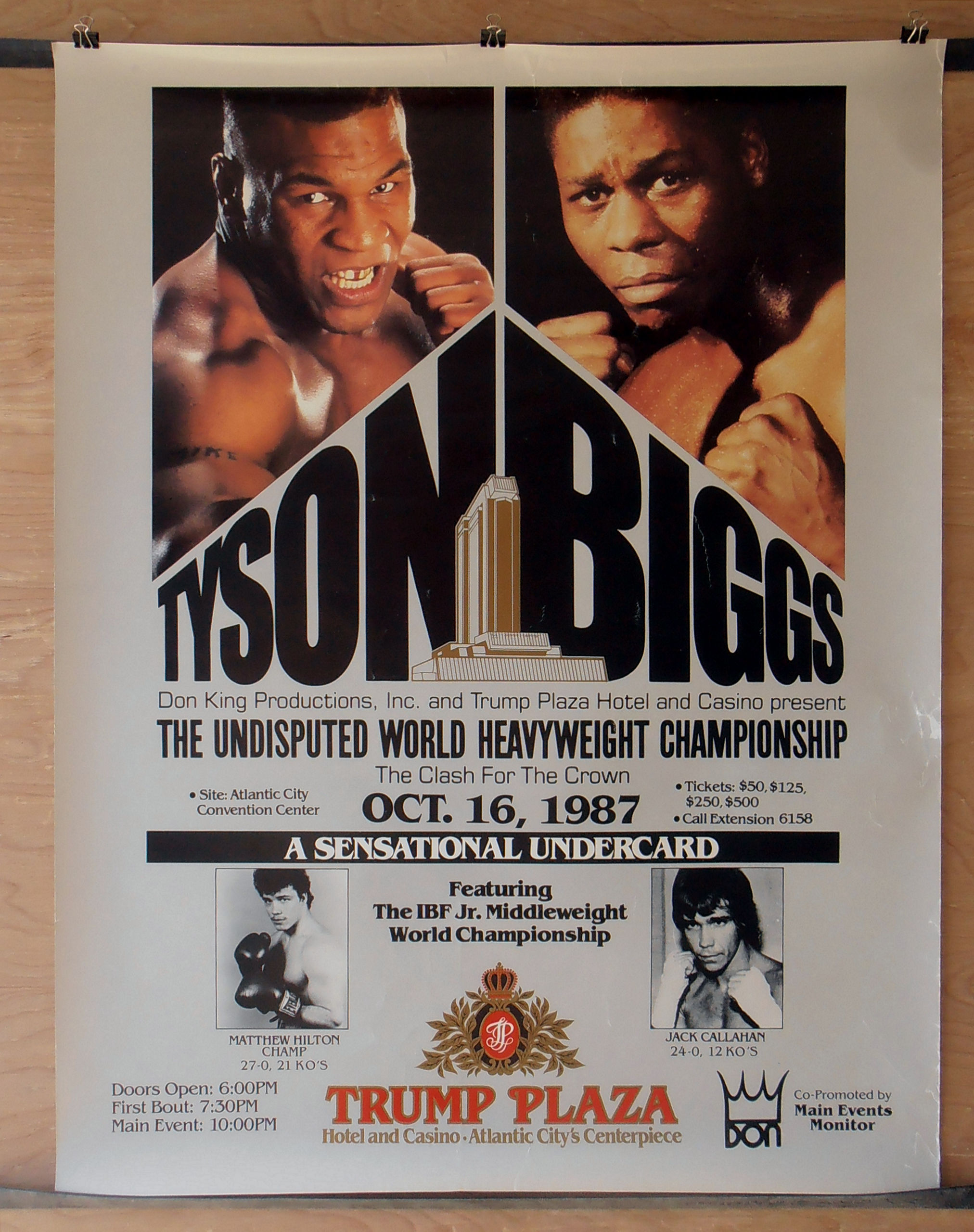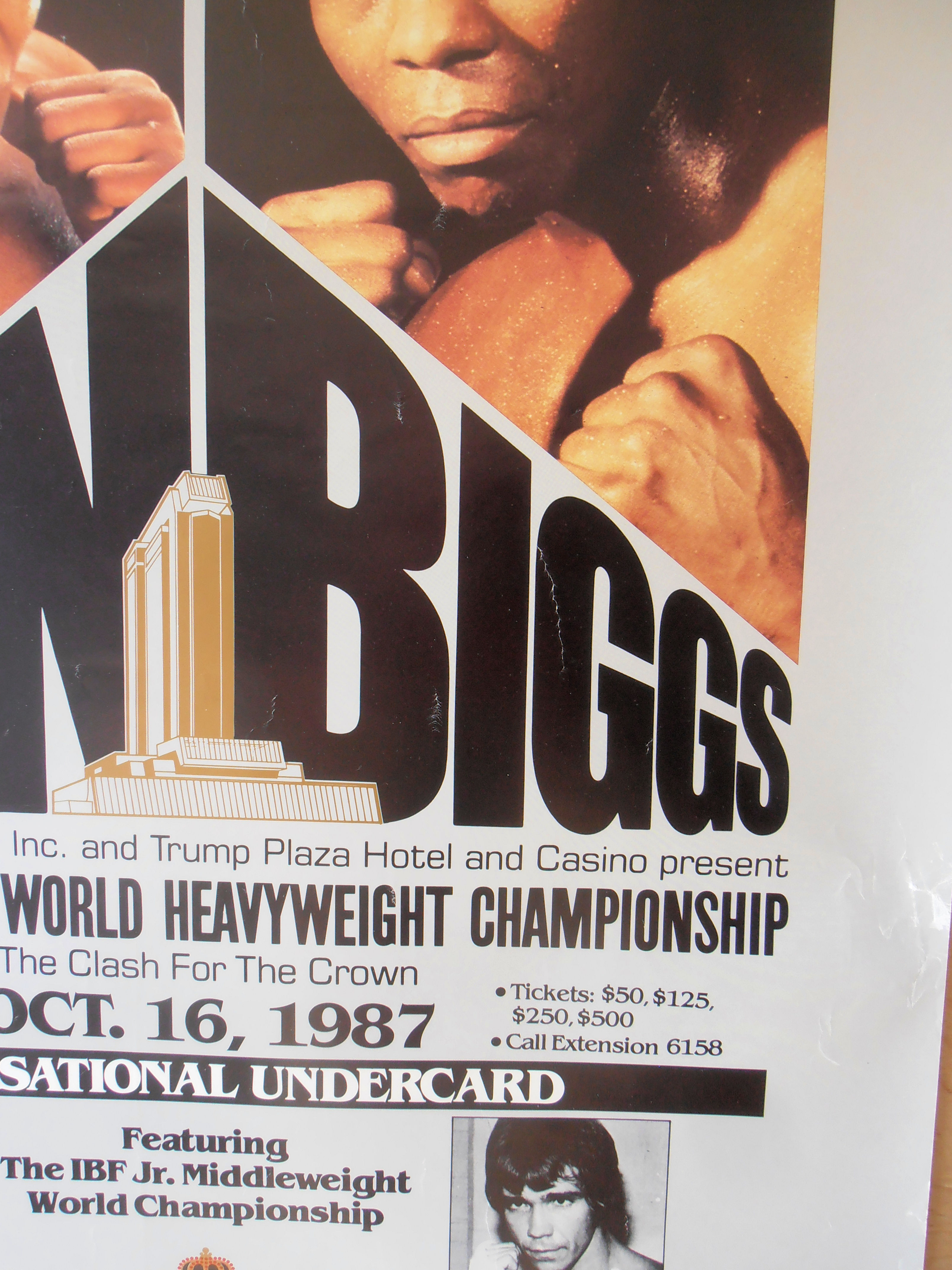 Description : Here we have the official onsite boxing fight poster for the undisputed world heavyweight championship title bout, billed as "Clash for the Crown" Atlantic City Convention Centre, Atlantic City, New Jersey, USA, 16th October 1987.