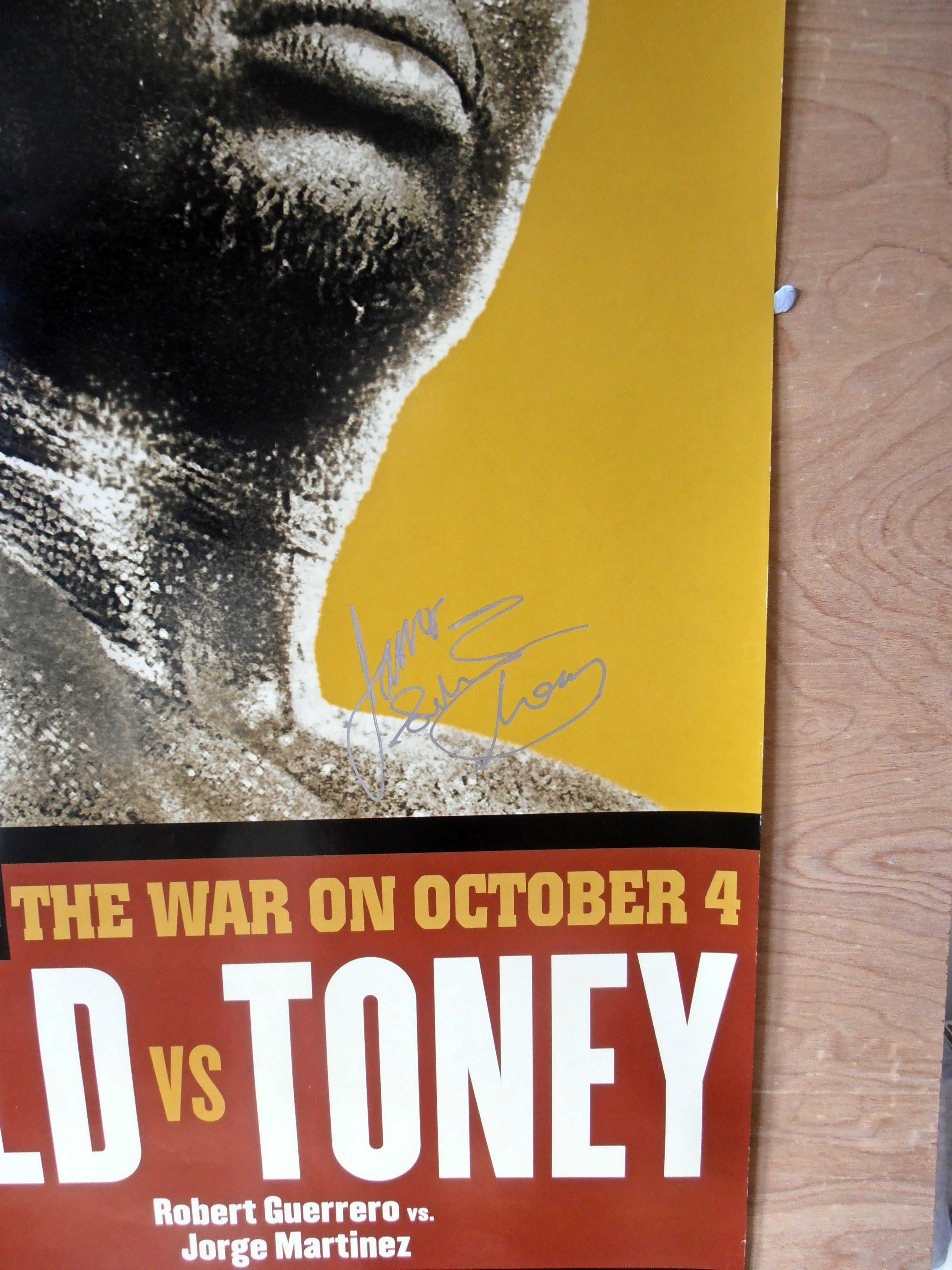 Description : Here we have an authentic James Toney signed original 'Showtime' boxing closed circuit fight poster for the heavyweight bout held at the Mandalay Bay, Las Vegas, Nevada USA, 4th October 2003.. Lifetime LOA supplied by KOfightposters.com.