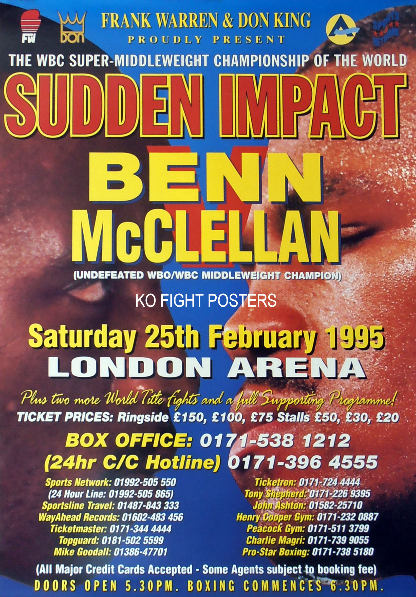 Description : Here we have an original onsite promotional boxing fight poster for the WBC world super middleweight championship title bout held at the London Arena, London, England. 25th February 1995.