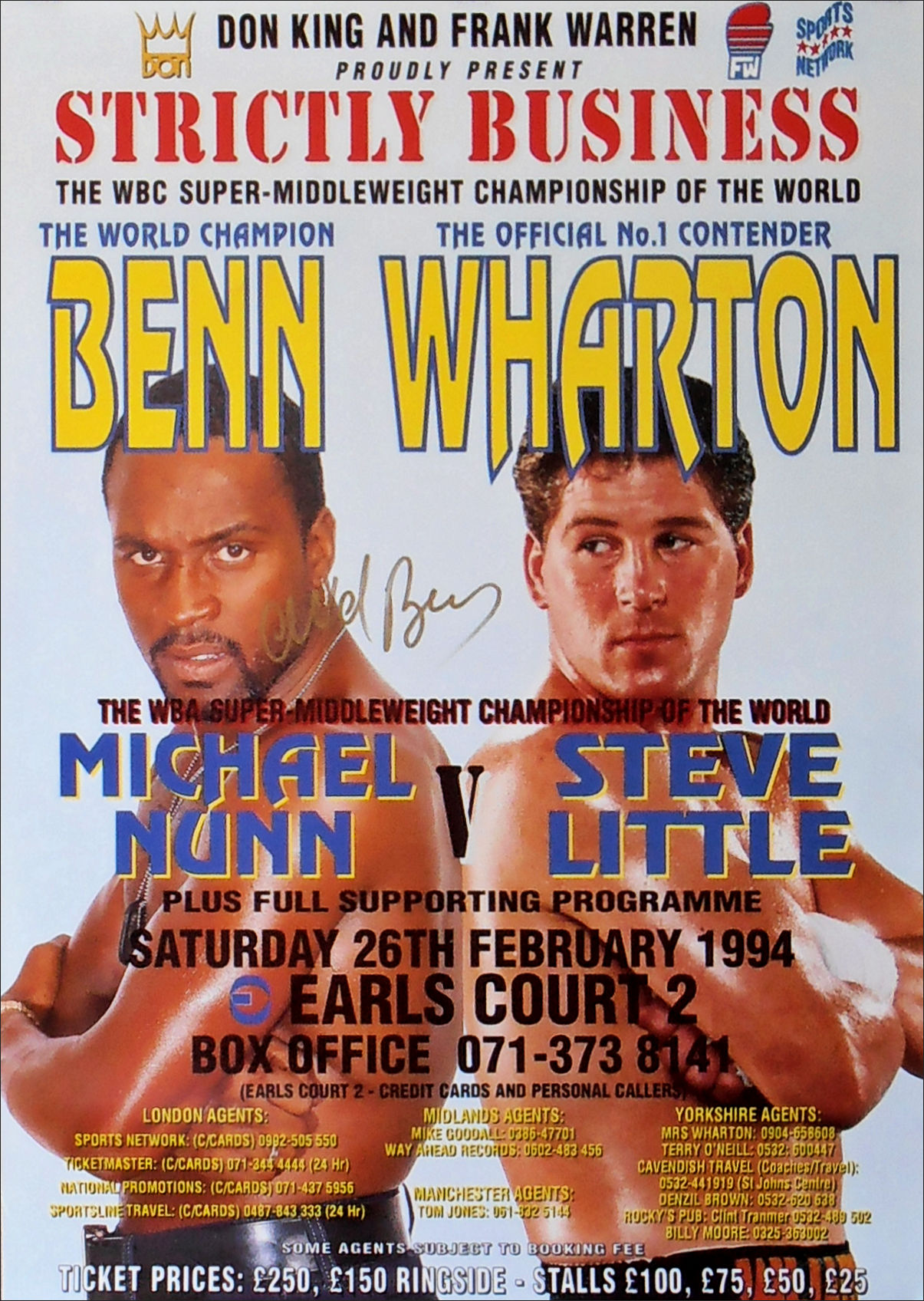 This original promotional boxing poster was signed by WBO/WBC two weight champion Nigel Benn. Lifetime LOA supplied by KOfightposters.com
