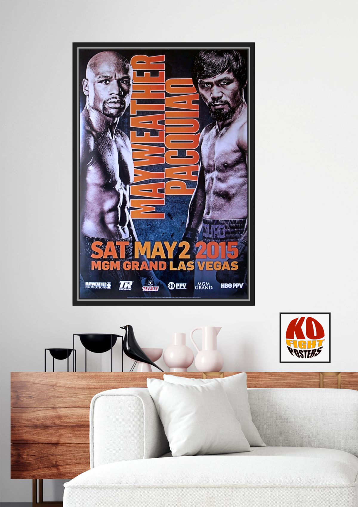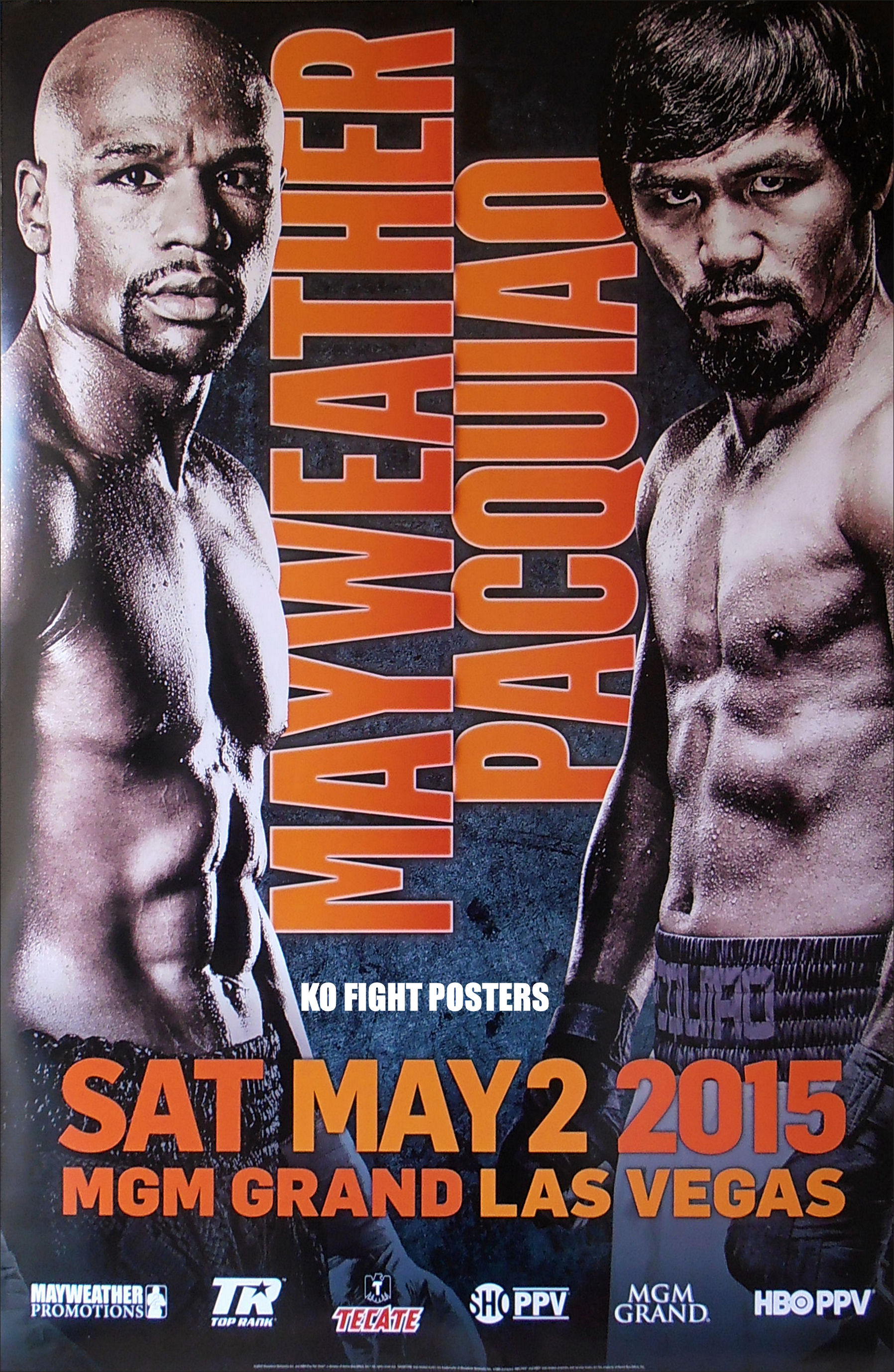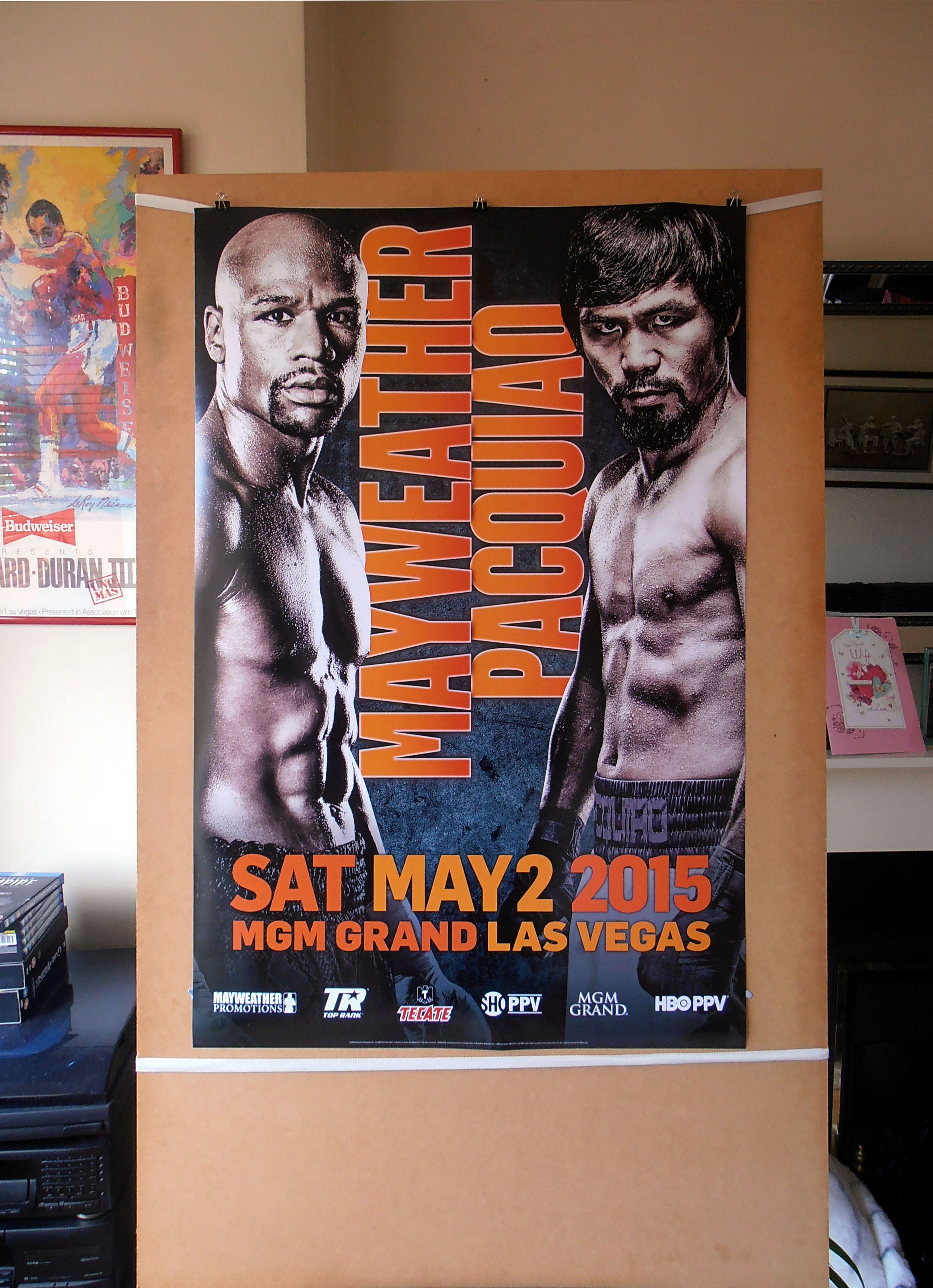 Description : Here we have the official onsite poster from the MGM Grand Las Vegas for the long awaited showdown between the eight-division world champion Manny Pacquiao and undefeated, five-division world champion Floyd Mayweather, Jr. The fight took place on at the MGM Grand Garden Arena, Las Vegas, Nevada USA. 2nd May 2015