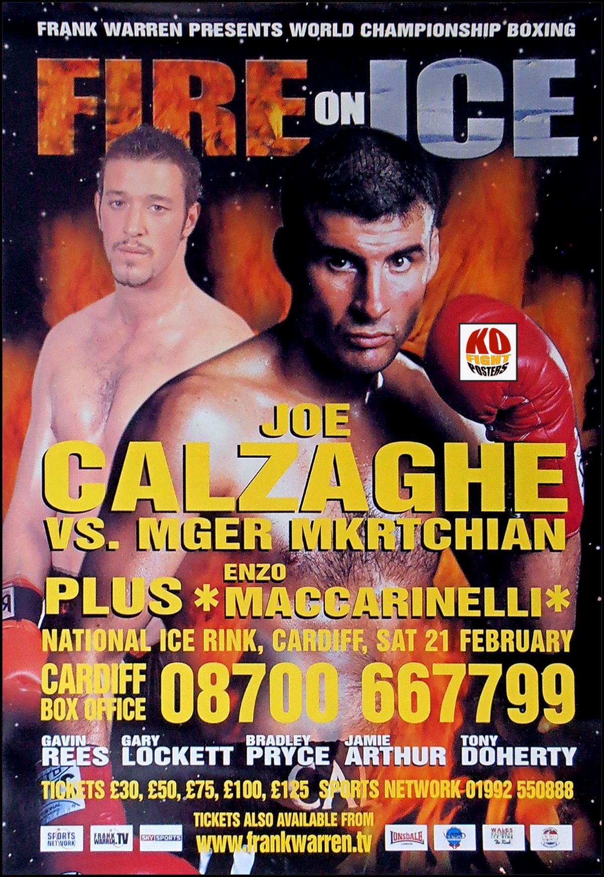 Description : Here we have an original onsite promotional boxing fight poster for the WBO world super middleweight championship title bout held at the National Ice Rink, Cardiff, Wales, United Kingdom, 21st February 2004 April.