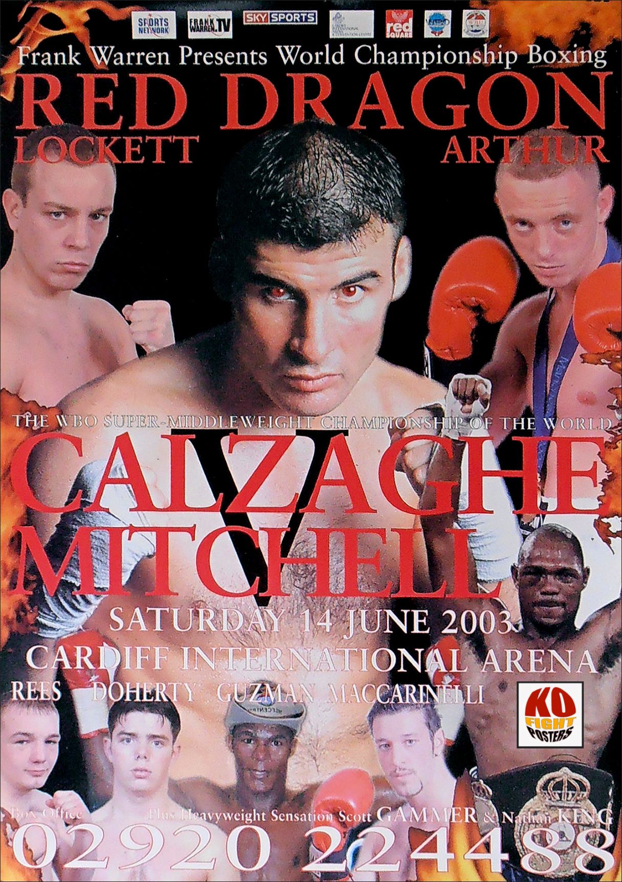 Description : Here we have an original onsite promotional boxing fight poster for the WBO world super middleweight championship title bout held at the Motorpoint Arena, Cardiff, Wales, United Kingdom, 14th June 2003. (Fight rescheduled for 28th June 1998)