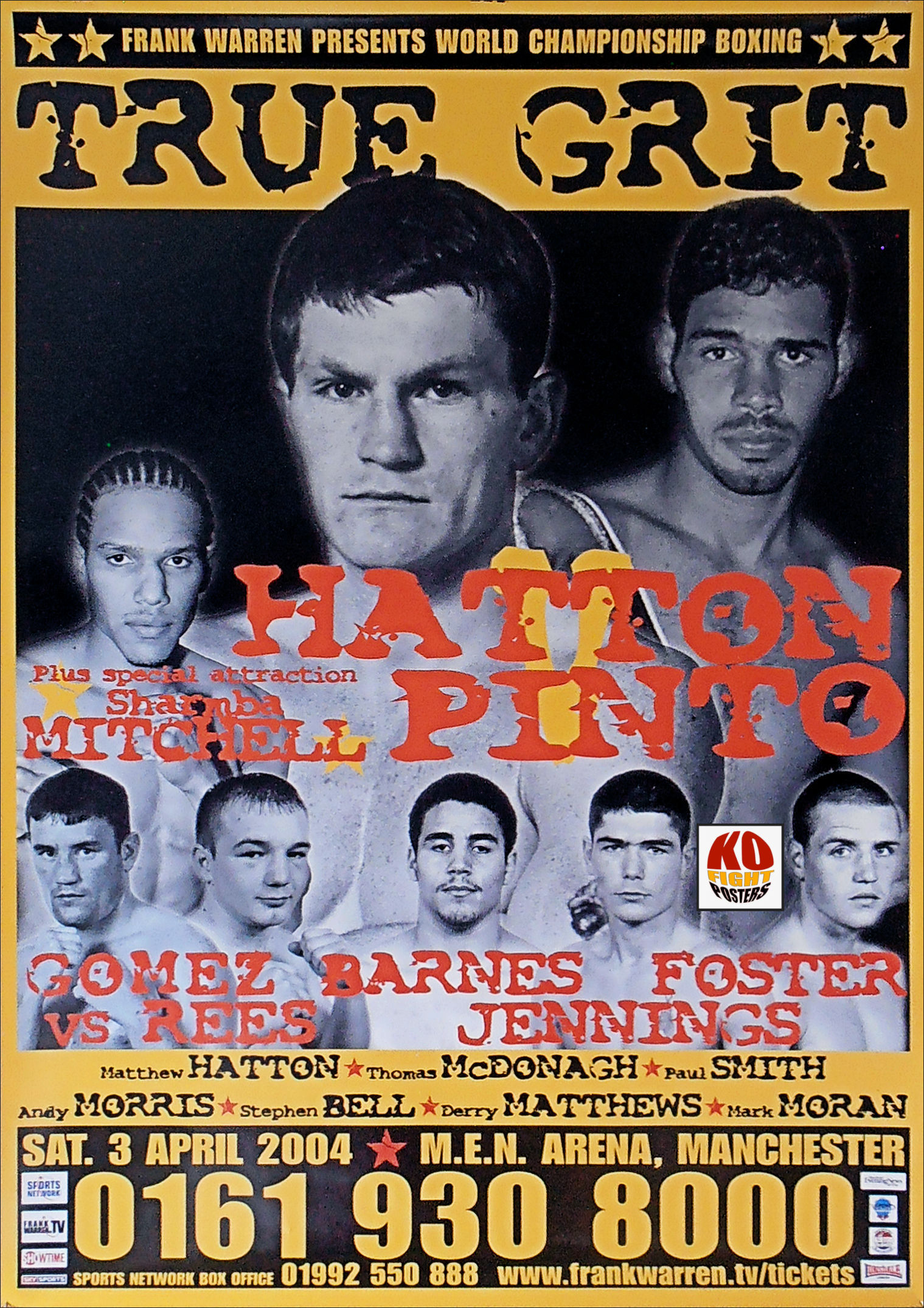 Description : Here we have an original onsite promotional boxing fight poster for the WBU world light welterweight championship title bout held at the M.E.N. Arena, Manchester, Lancashire, England. 3rd April 2004.