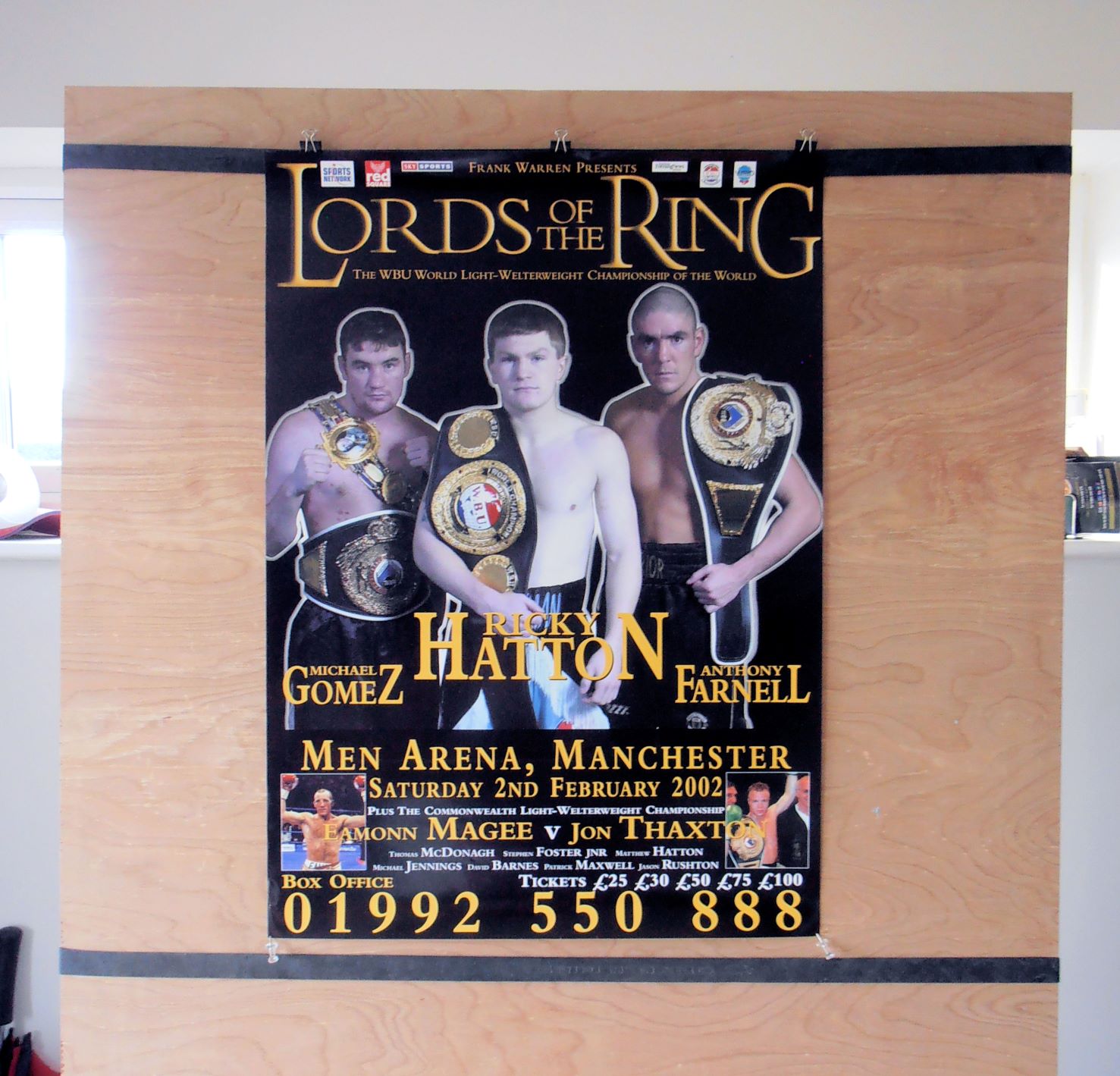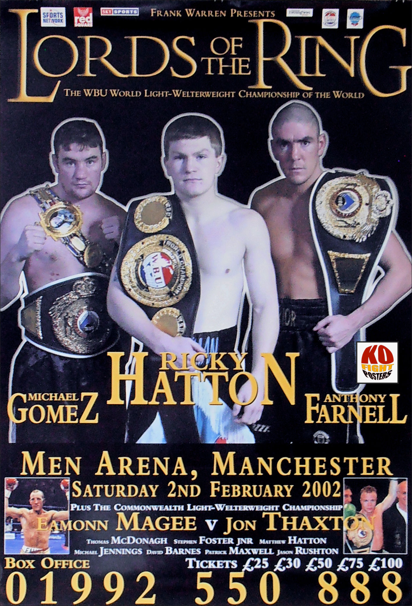 Description : Here we have an original onsite promotional boxing fight poster for the WBU world light welterweight championship title bout held at the M.E.N. Arena, Manchester, Lancashire, England. 9th February 2002.