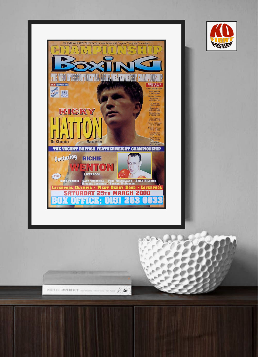 Description : Here we have an original onsite promotional boxing fight poster for the WBO Inter-Continental Super Lightweight championship title bout held at the Olympia, Liverpool, England. 25March 2000.