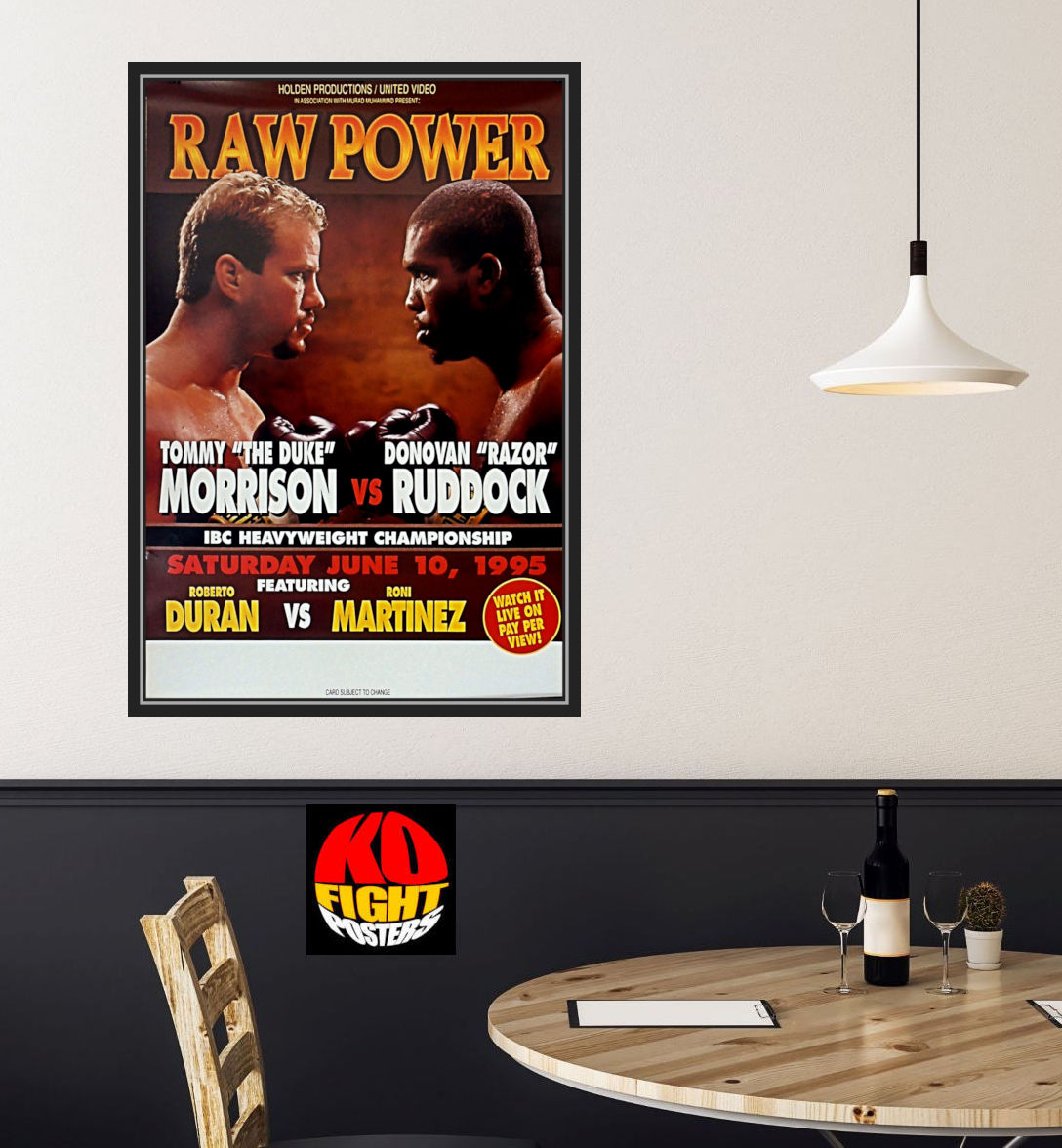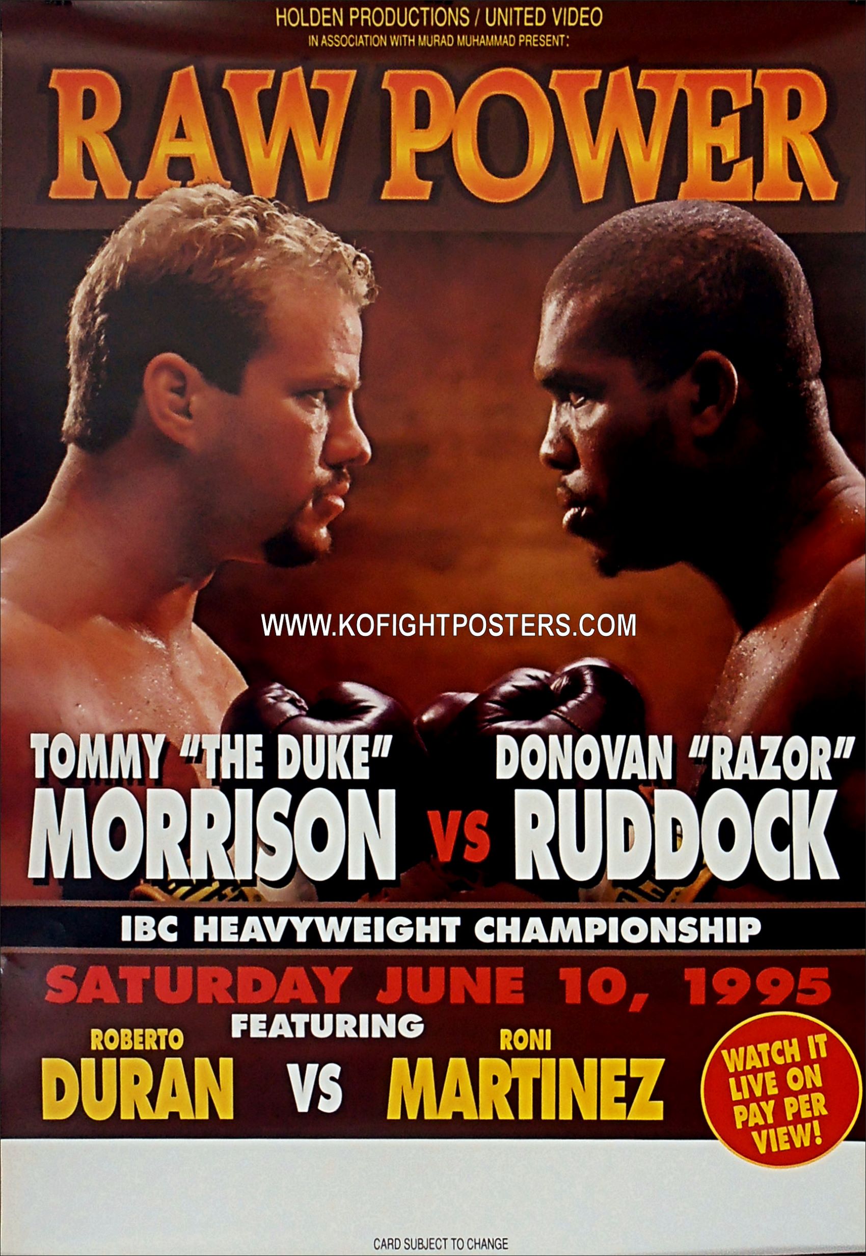 Wow what a rock'em sock'em up & down barn burner as Morrison was knocked down once in the 1st round by right uppercut, then Ruddock after being hit with a right uppercut was given a standings eight count in Round 2 as he held onto the top rope for balance. Morrison was wobbled a little bit in the 6th round by left hook.