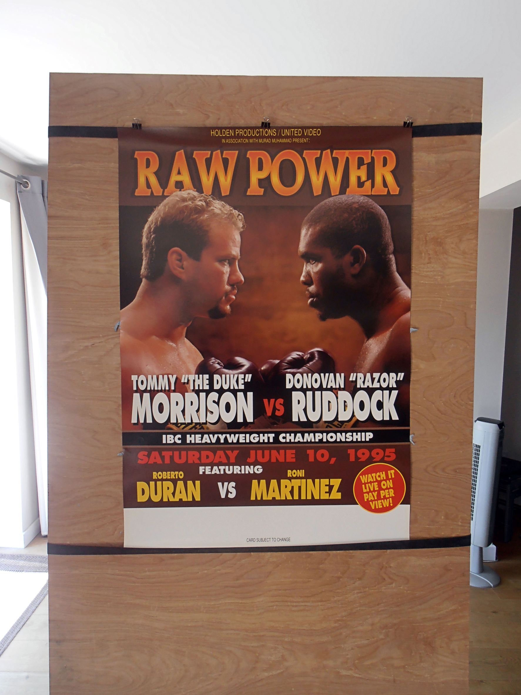 Description : Here we have an original participating venue closed circuit PPV boxing poster for the 'vacant' IBC heavyweight championship title bout held at the Municipal Auditorium, Kansas City, Missouri, USA, 10th June 1995.