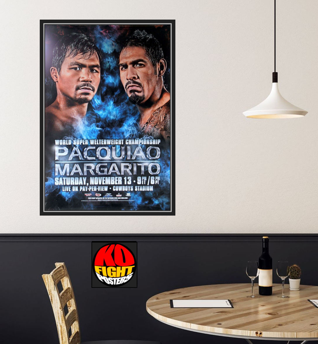 Description : Here we have an original full-size HBO Boxing Pay-Per View poster from that historic night at the Cowboys Stadium, Dallas, when Manny Pacquiao claimed the WBC world super welterweight title, making him an 8 division champion. An incredible feat!