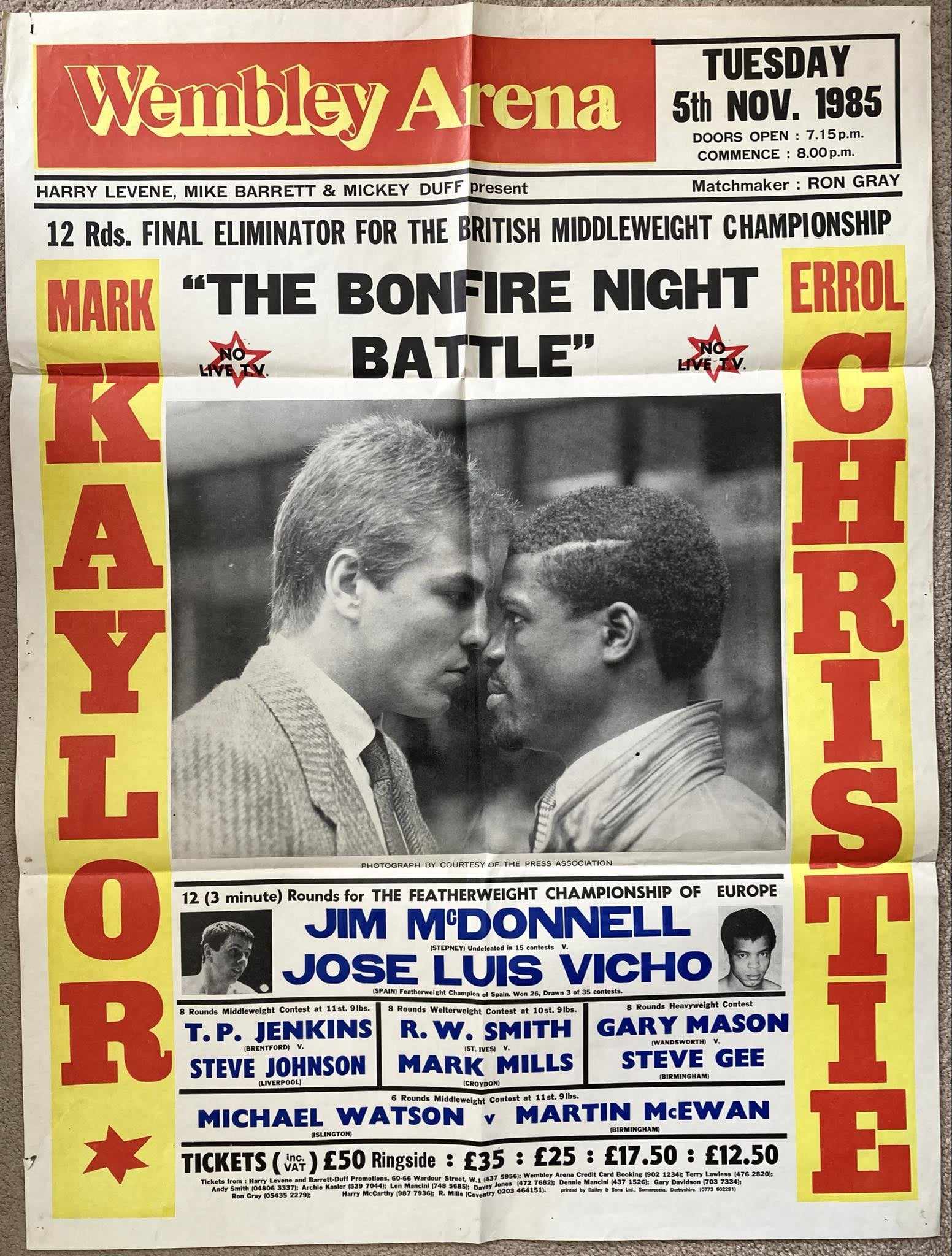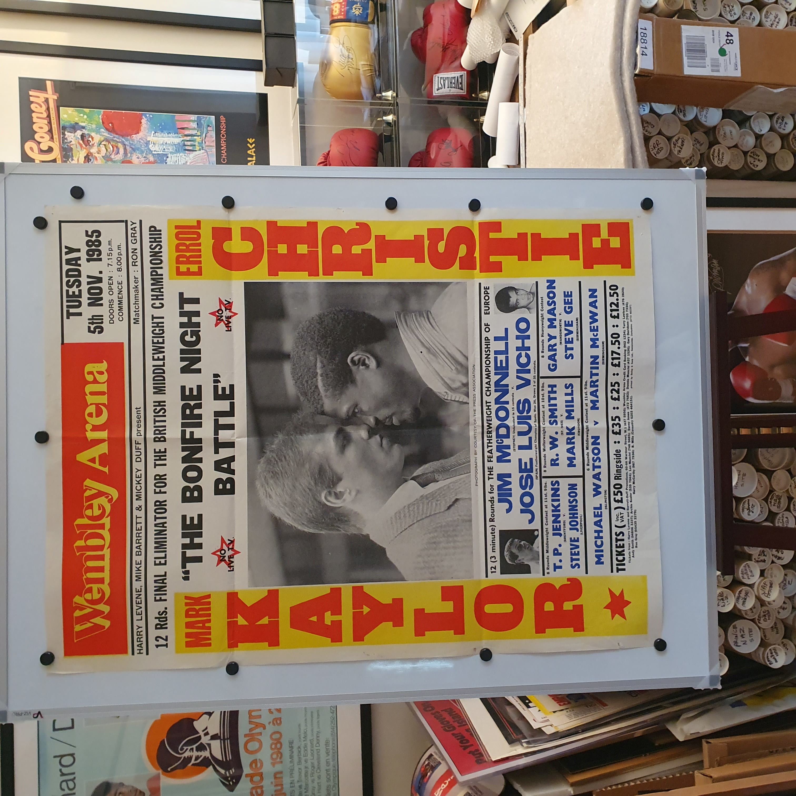 Description : Here we have a super rare original Billboard boxing fight poster for the British middleweight title eliminator bout to be held at Wembley Arena, Tuesday 5th November 1985.