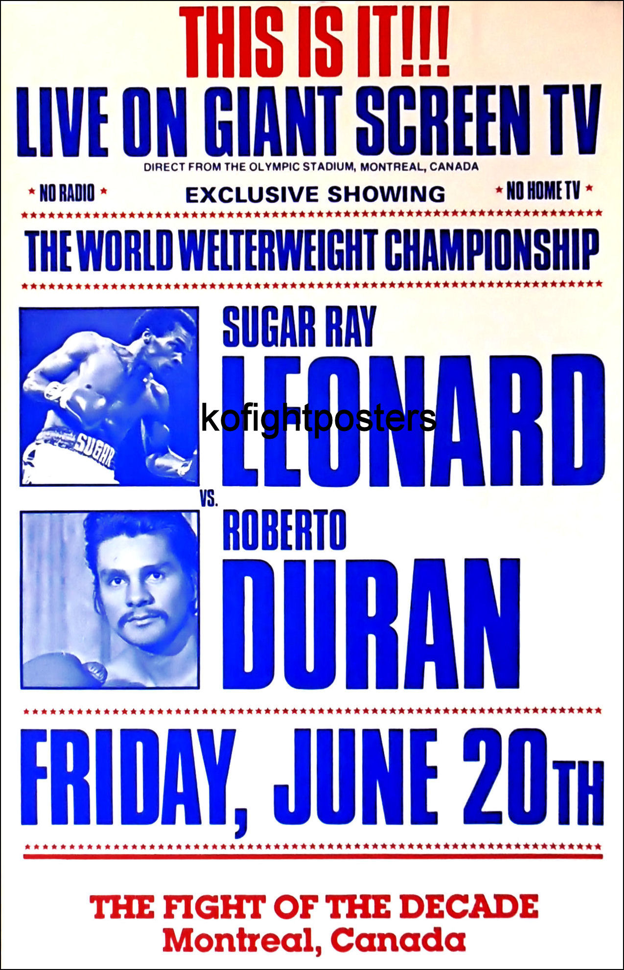 On June 20, 1980, The 24 year old Sugar Ray Leonard returned to the Olympic Stadium in Montreal to defend his title against Roberto Duran before a crowd of 46,317. Duran was now 29 & the former Undisputed World Lightweight Champion, who's record of 71-1 and was the #1 welterweight contender & had been attributed the accolade of the "70's Fighter of the Decade"