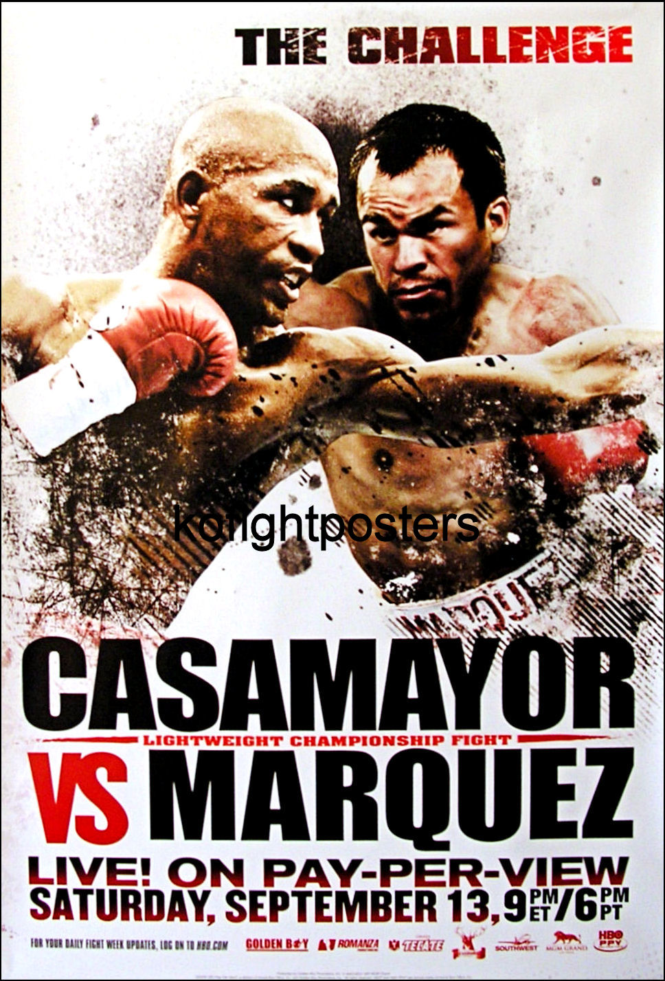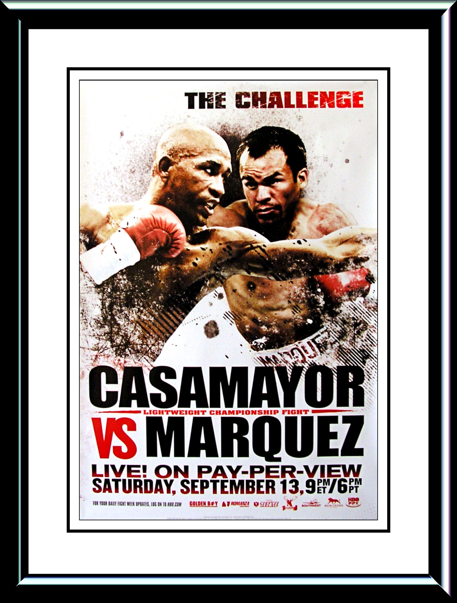 Description : Here we have an original full-size HBO Boxing Pay-Per-View fight poster billed as "The Challenge" for the Ring Magazine & Universally recognised world lightweight title. The bout was held at the MGM Grand Garden Arena, Las Vegas.