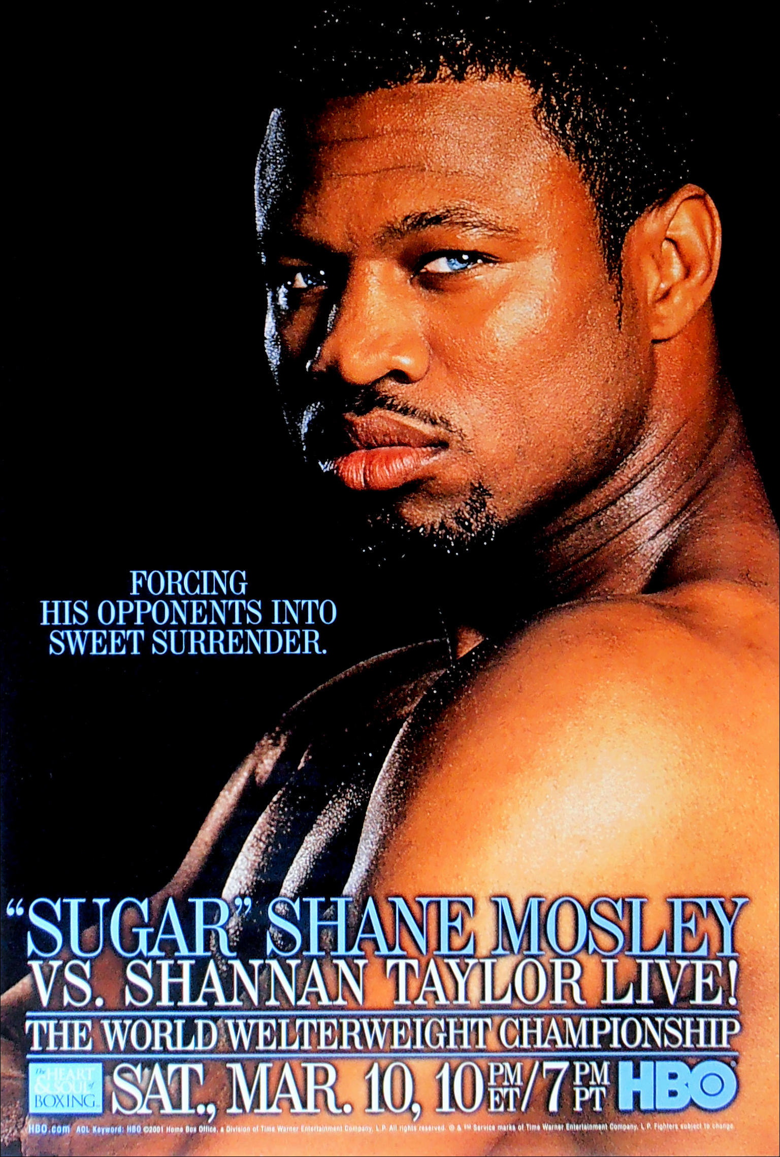Description : Here we have an original full-size HBO boxing closed circuit fight poster for the WBC World welterweight championship title bout held at Caesars Palace, Las Vegas, Nevada, USA, 10th March 2001.