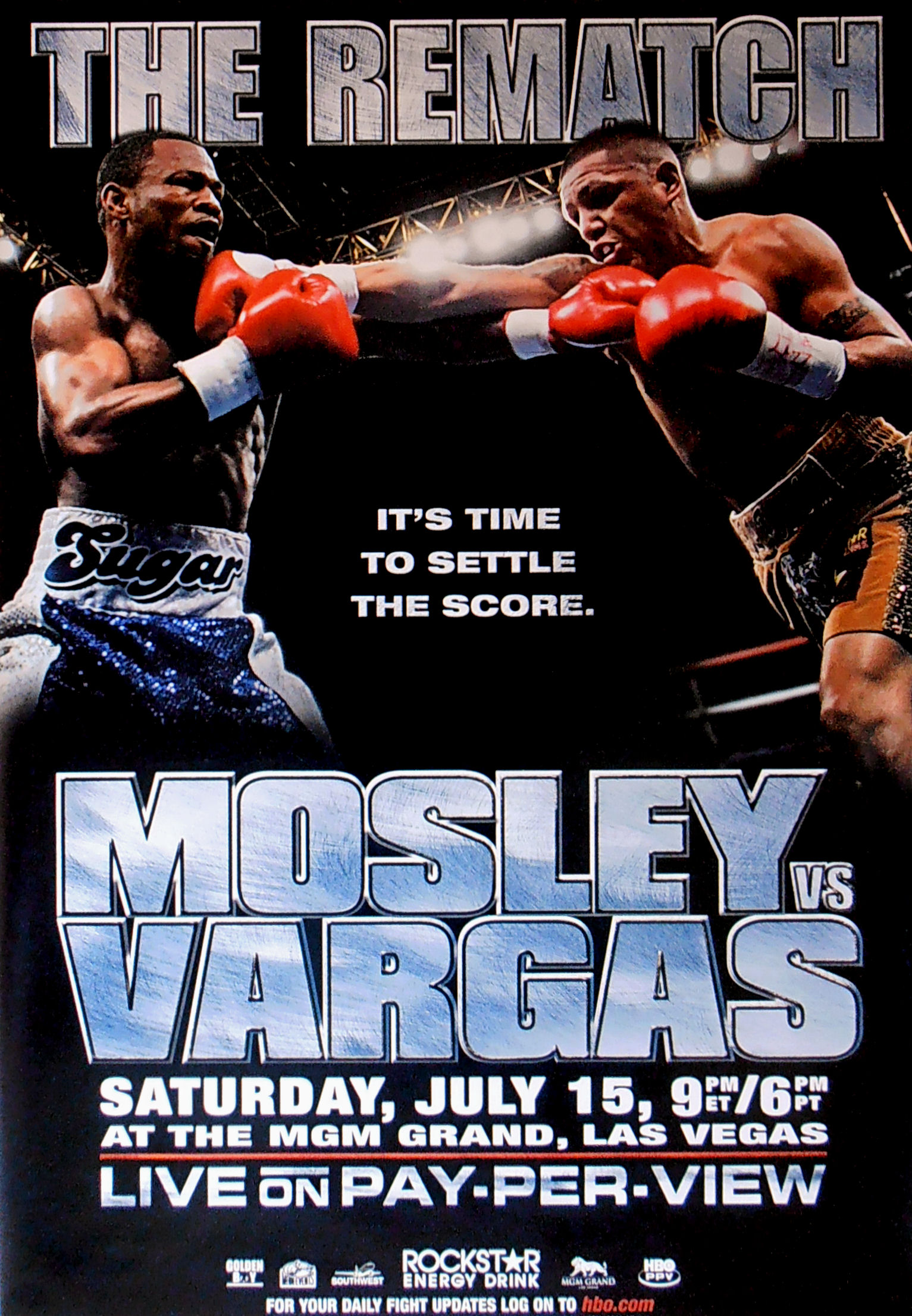 Mosley (43-4, 37 KOs) defeated Vargas (26-4, 22 KOs) in a one-sided rematch at the MGM Grand in Las Vegas. Mosley floored Vargas with a left hook in the sixth and Vargas had very hard time in getting up. Referee Kenny Bayless stopped the fight moments later. At the time of the stoppage, Mosley had won every round on all three judges' card. Mosley was much, much quicker than Vargas, easily winning rounds with his speed and combinations.