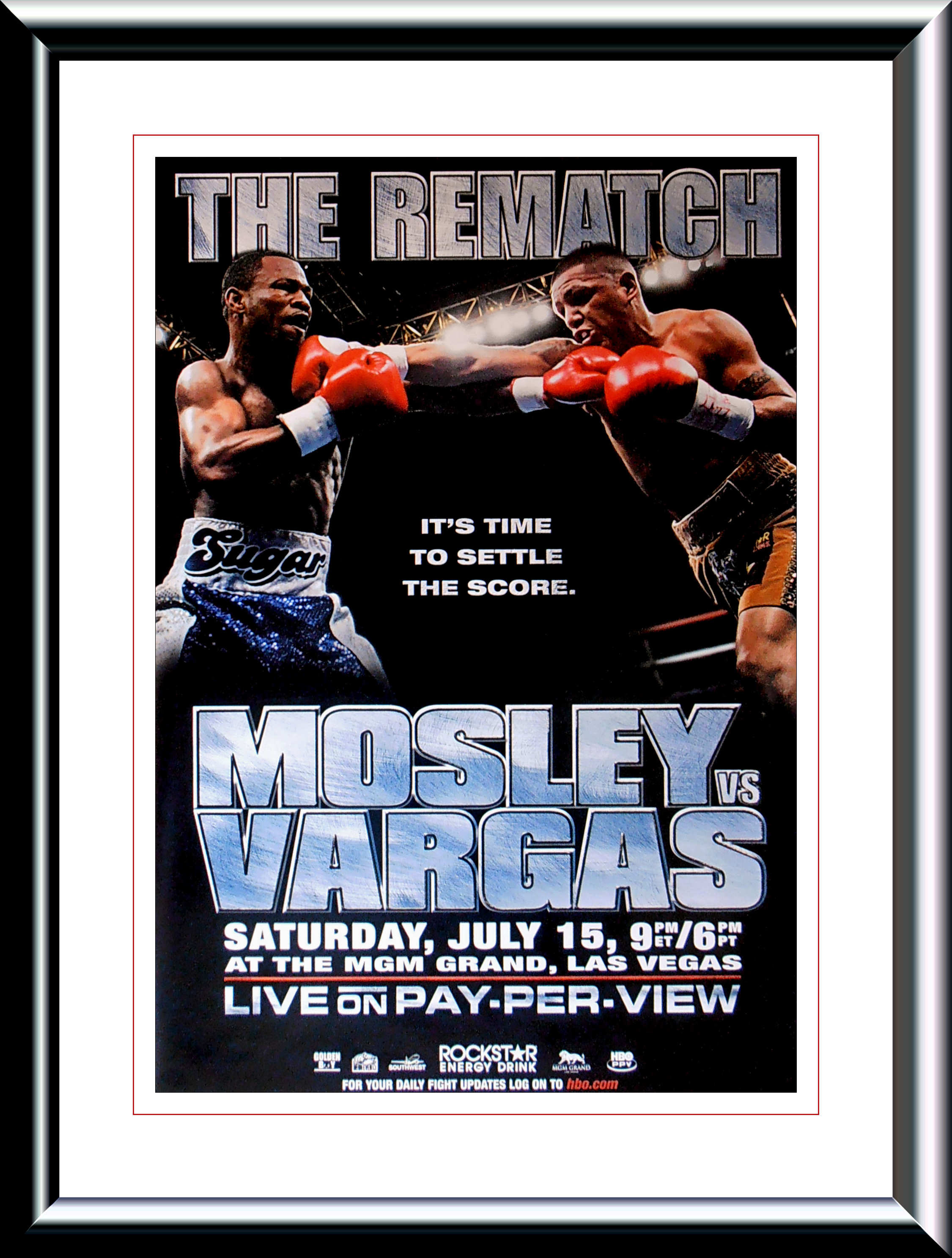 Description : Here we have an original full-size HBO boxing pay-per-view closed circuit fight poster for the light-middleweight re-match held at the MGM Grand Garden Arena Las Vegas 15th July 2006.