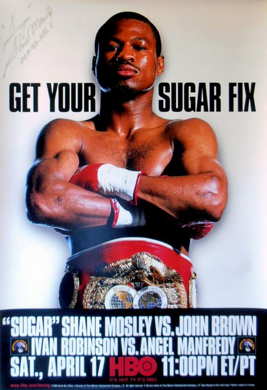 This Sugar Shane Mosley autographed HBO closed circuit fight poster comes with a letter of guarantee of authenticity from KOfightposters.com for a lifetime & beyond.