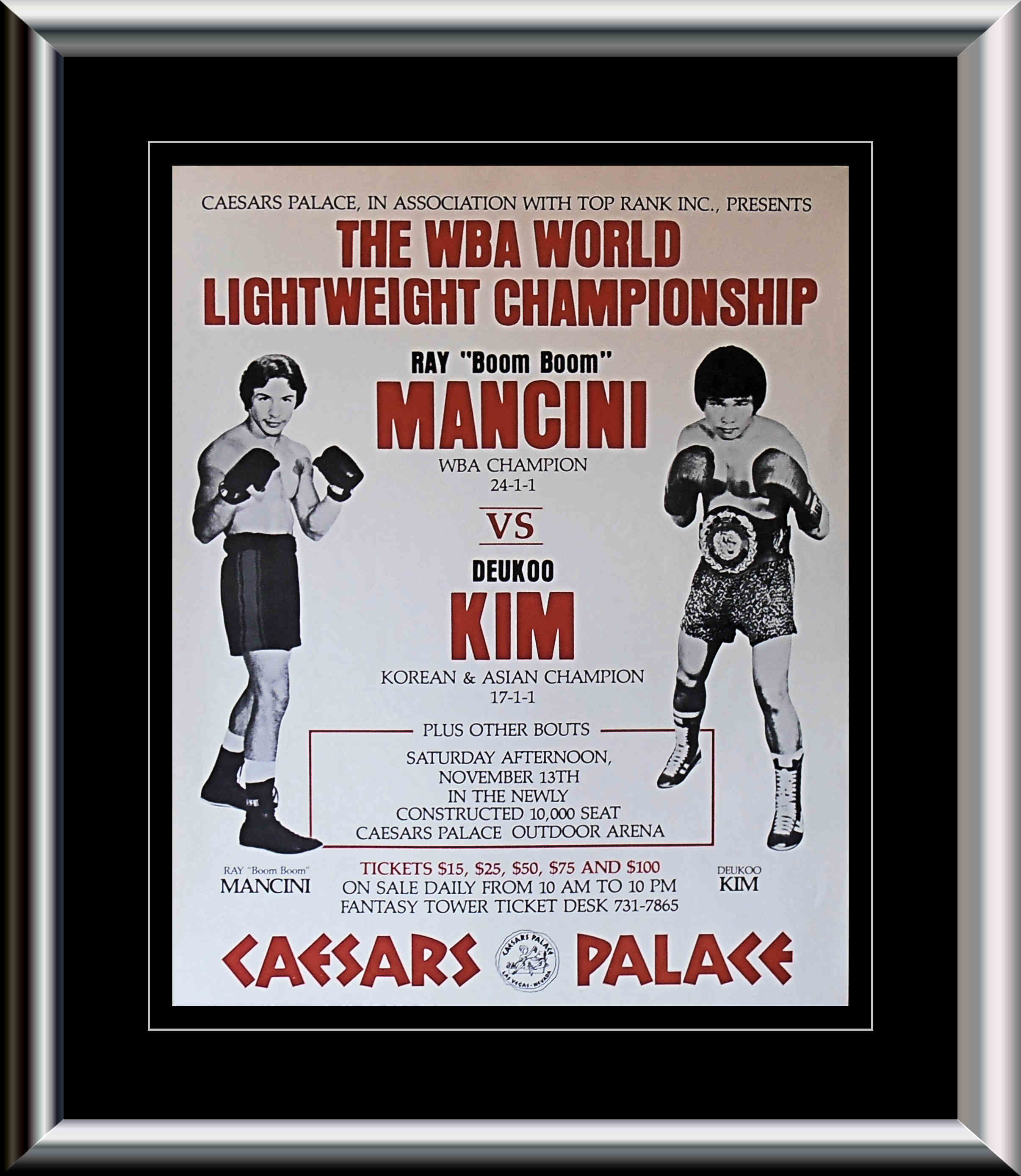 Description : Here we have the official Caesars Palace vintage onsite poster for the WBA Lightweight Championsghip.