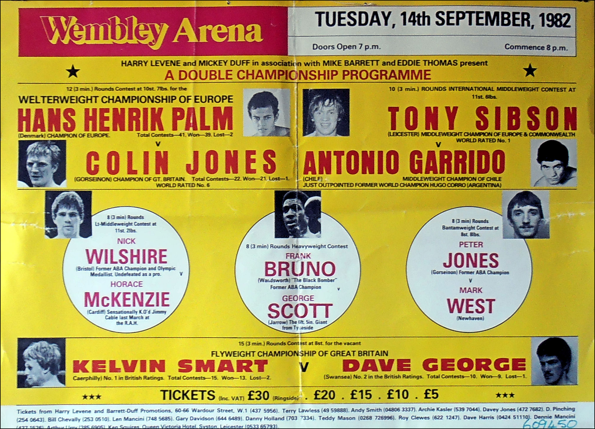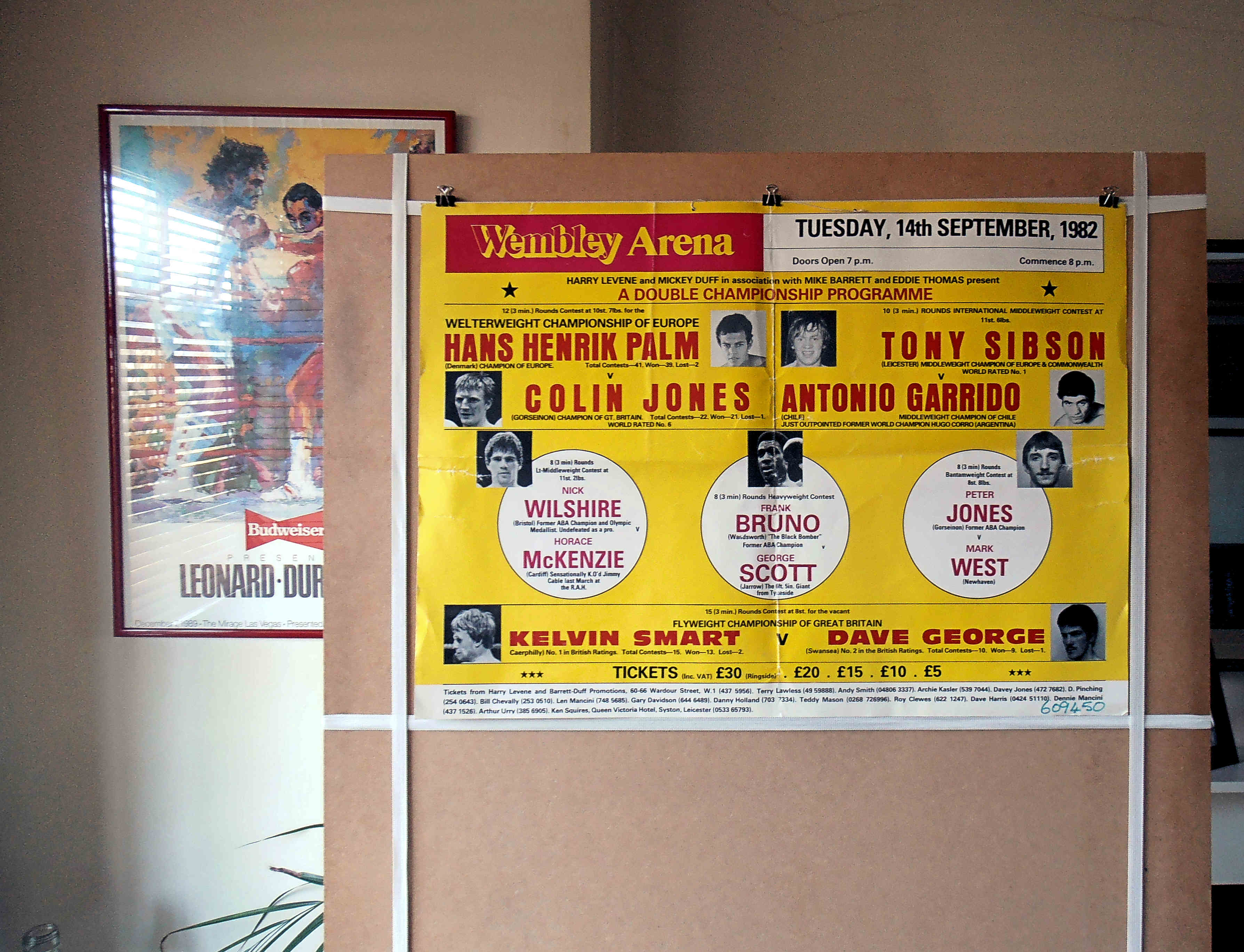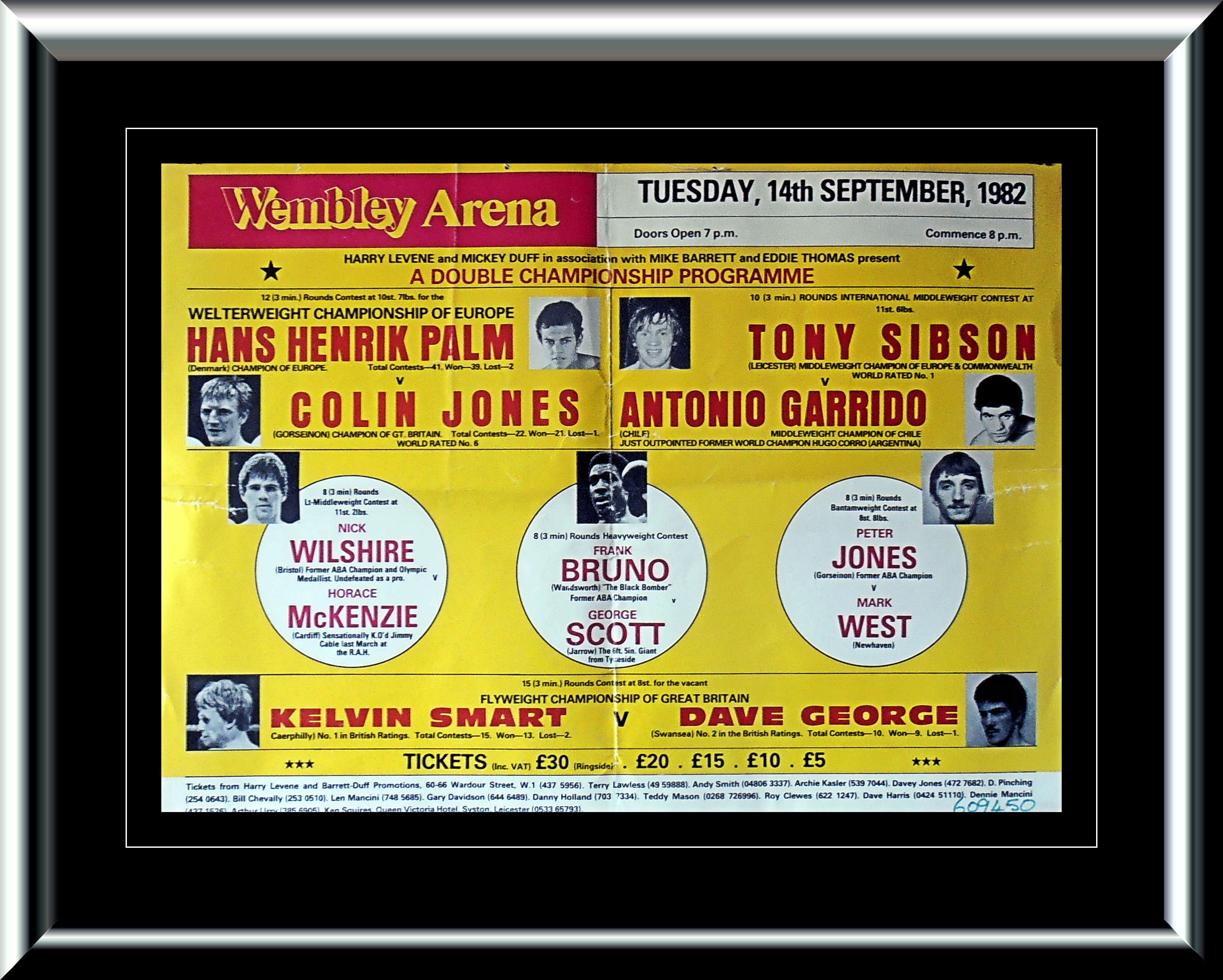 Description : Here we have an original onsite poster from the old Wembley Arena, London, for the Colin Jones defence of his European Welterweight Title. Great piece of boxing history here, these posters are now very hard to locate.