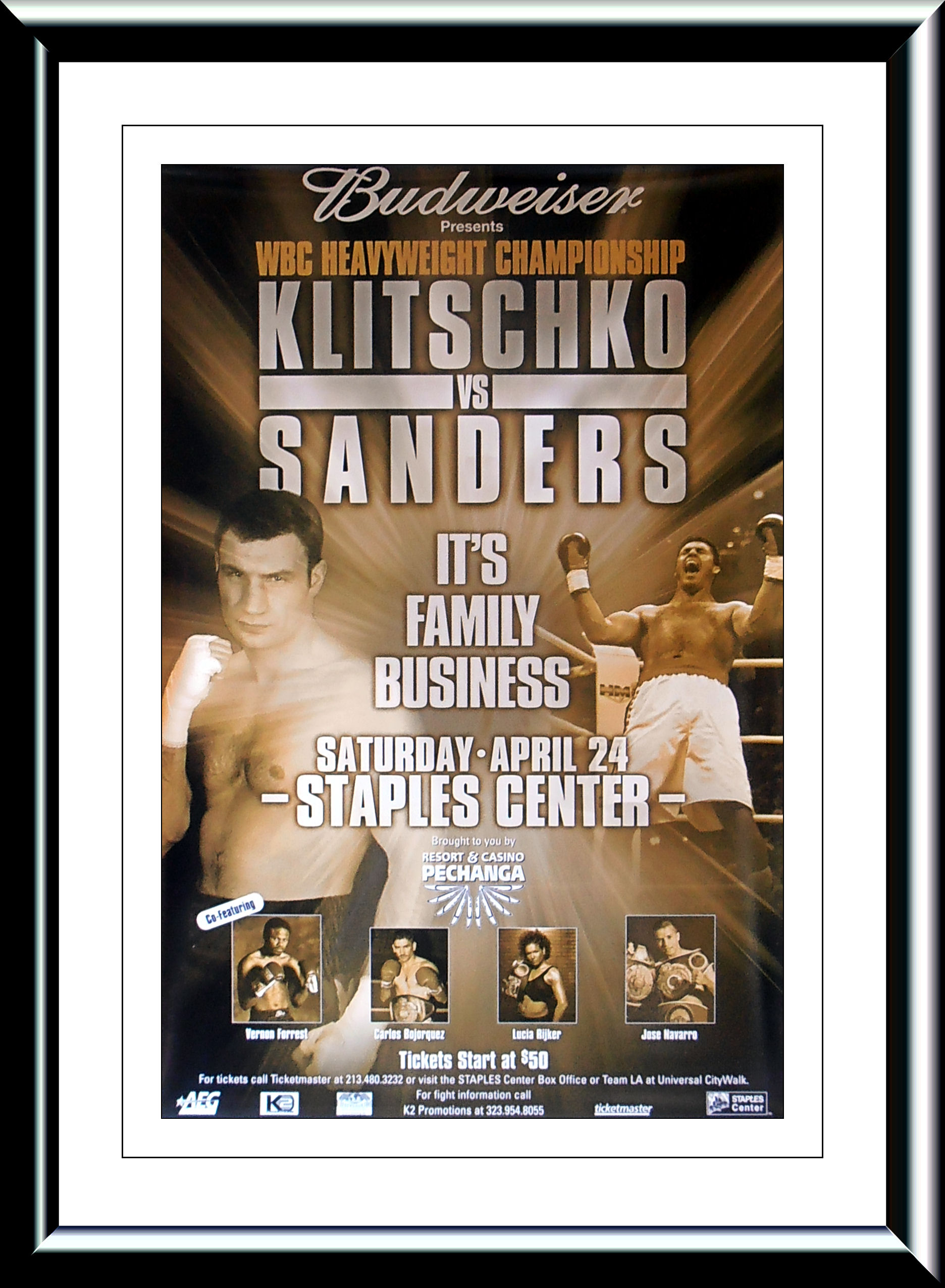 Description : Here we have an original official onsite main event boxing fight poster for the vacant WBC World heavyweight championship title bout held at the Staples Center, Los Angeles, California, USA, 24th April 2004.
