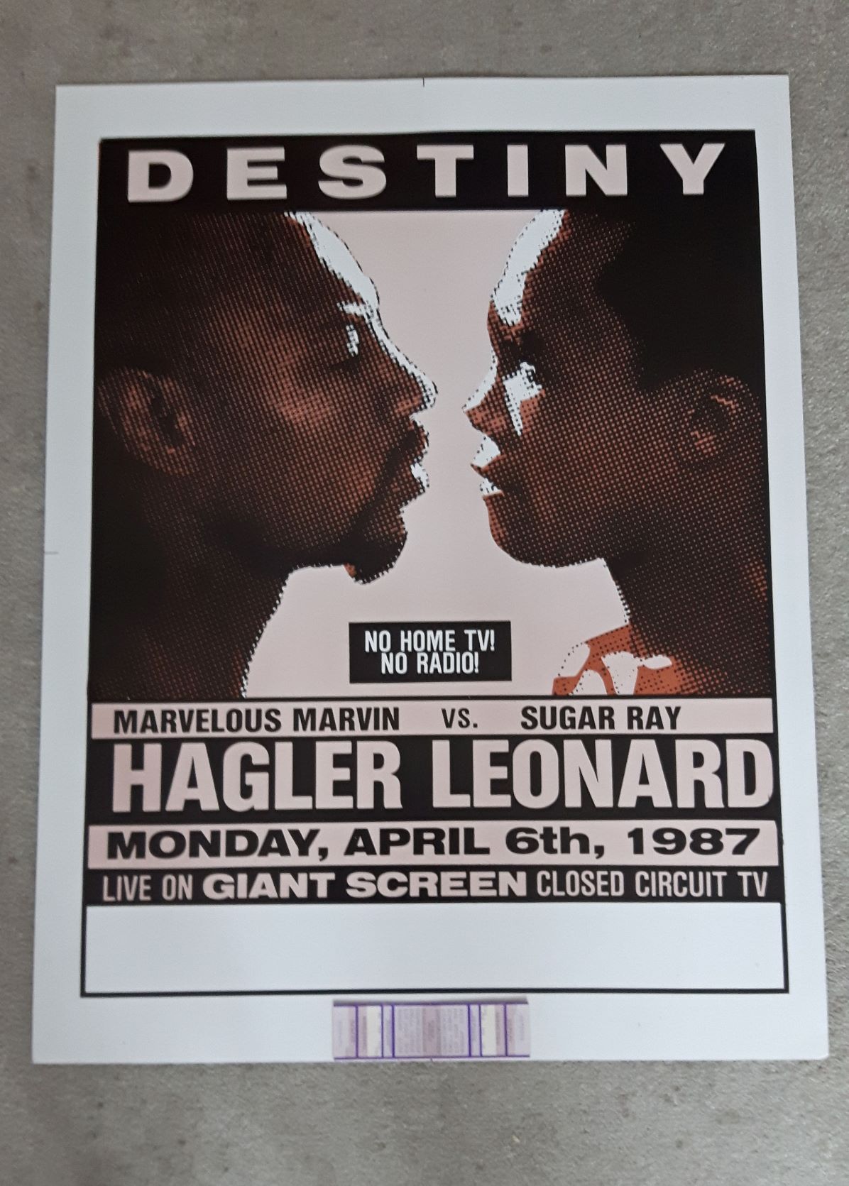 Description : Here we have an original national closed circuit main event boxing poster from the long awaited SuperFight held at Caesars Palace Las Vegas, 6th April 1987.