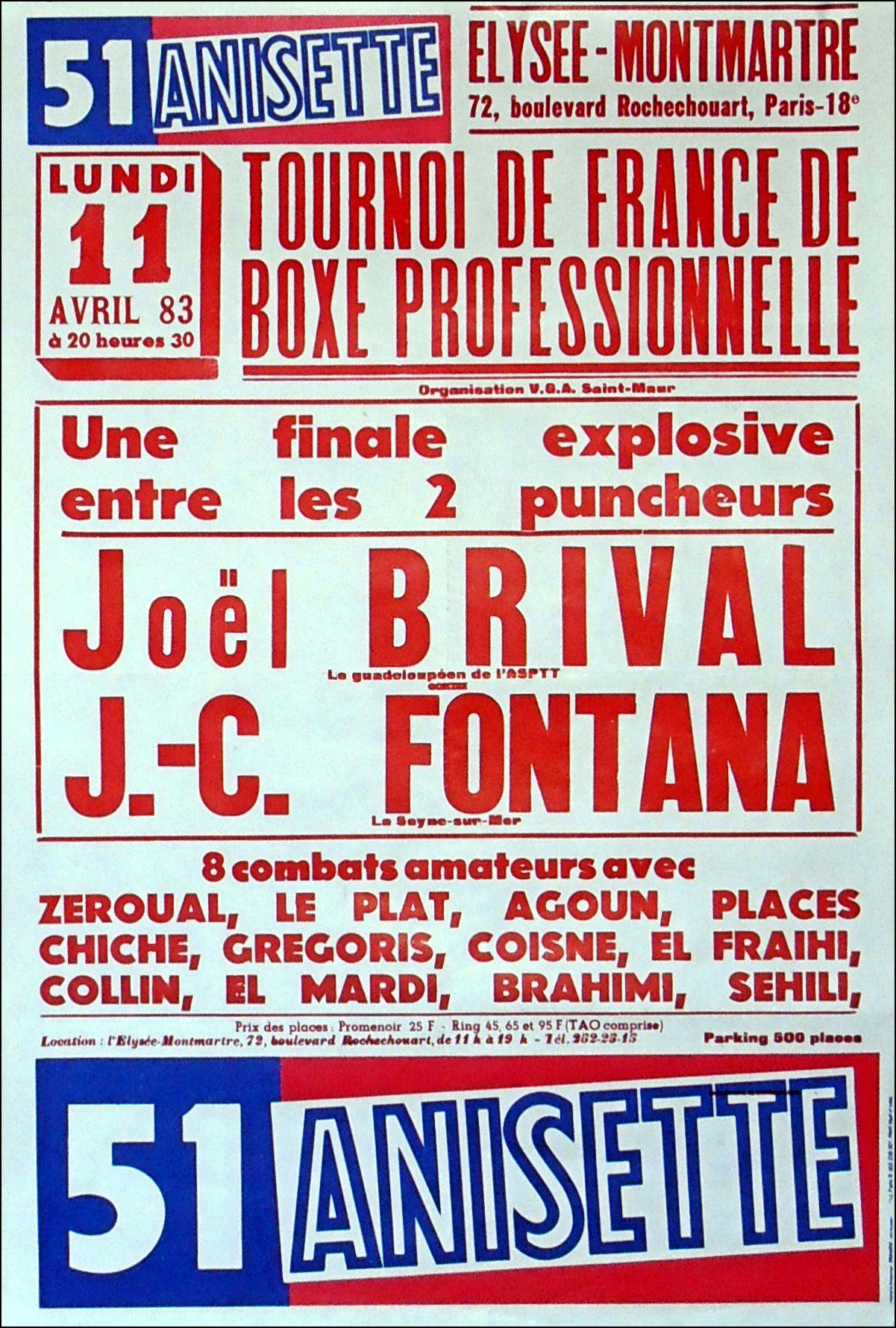 Description : Vintage 1980's french boxing fight poster from Paris.