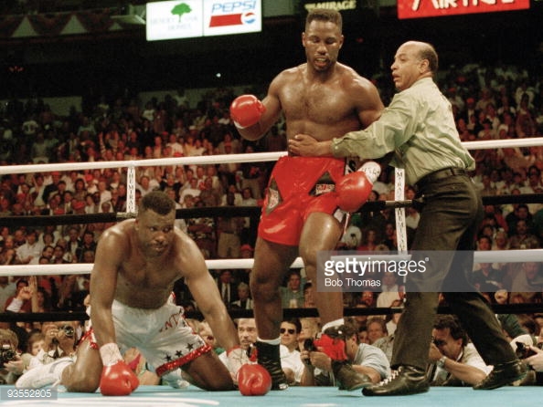 Like his previous championship fight with Tyson, Tucker was able to go the full 12 rounds with the much younger Lewis but was unable to put together much by way of offense during the bout. Tucker who had previously never been knocked down in 50 fights as a professional was decked twice duting the bout. The first came during the final minute of the 3rd round, Tucker attempted to hit Lewis with a jab with about 40 seconds left, but Lewis was able to dodge it and quickly landed a strong right hook that dropped Tucker to the canvas for the 1st time in his career.
