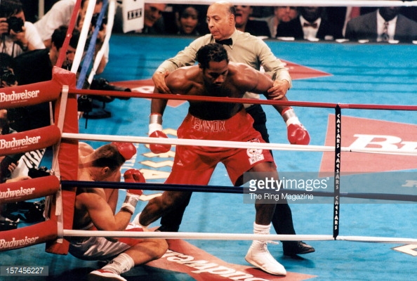Many thought that this fight would be a back-and-forth contest between two of boxing's top heavyweights, it instead became one of the most lopsided championship fights in the sport's history as Lewis destroyed the giant pole inside a round. As soon as the fight started, Lewis had Golota on the defensive by effectively using his strong left jab and as the first minute of the fight came to close, was able to land a powerful right hook that stunned Golota and sent him into the corner. With Golota's back now against the turnbuckle, Lewis proceeded to land a six-punch combination that sent Golota to the canvas. Golota was able to back up, but was clearly hurt from the exchange and had trouble finding his balance. Nevertheless, referee Joe Cortez allowed Golota to continue the fight but he was quickly met with a furious assault from Lewis, who landed an over 10-punch combination that again sent Golota down. Cortez quickly stopped the fight and Lewis was named the winner by knockout after only 95 seconds of action.