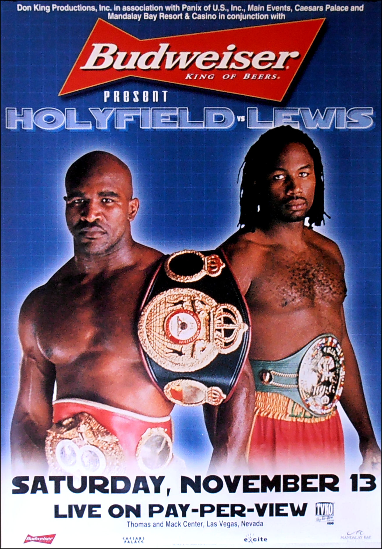 Description : Here we have the Budweiser official fight sponsors PPV/Closed circuit poster for the rematch held at the Thomas & Mack Centre Las Vegas.