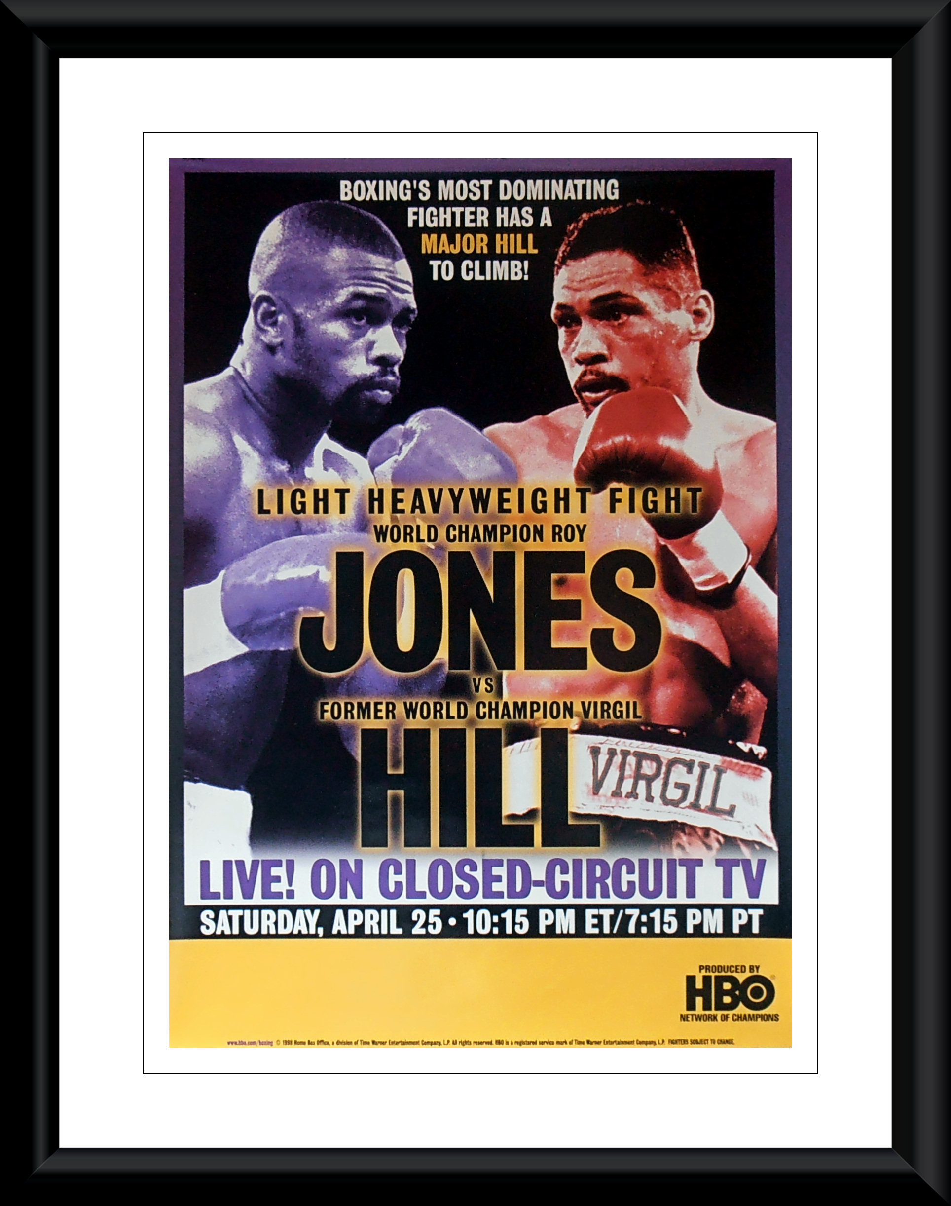 Description : Here we have an original official HBO Boxing closed circuit fight poster for light-heavyweight non-title bout held at the Coast Coliseum, Biloxi, Mississippi, USA, 25th April 1998.