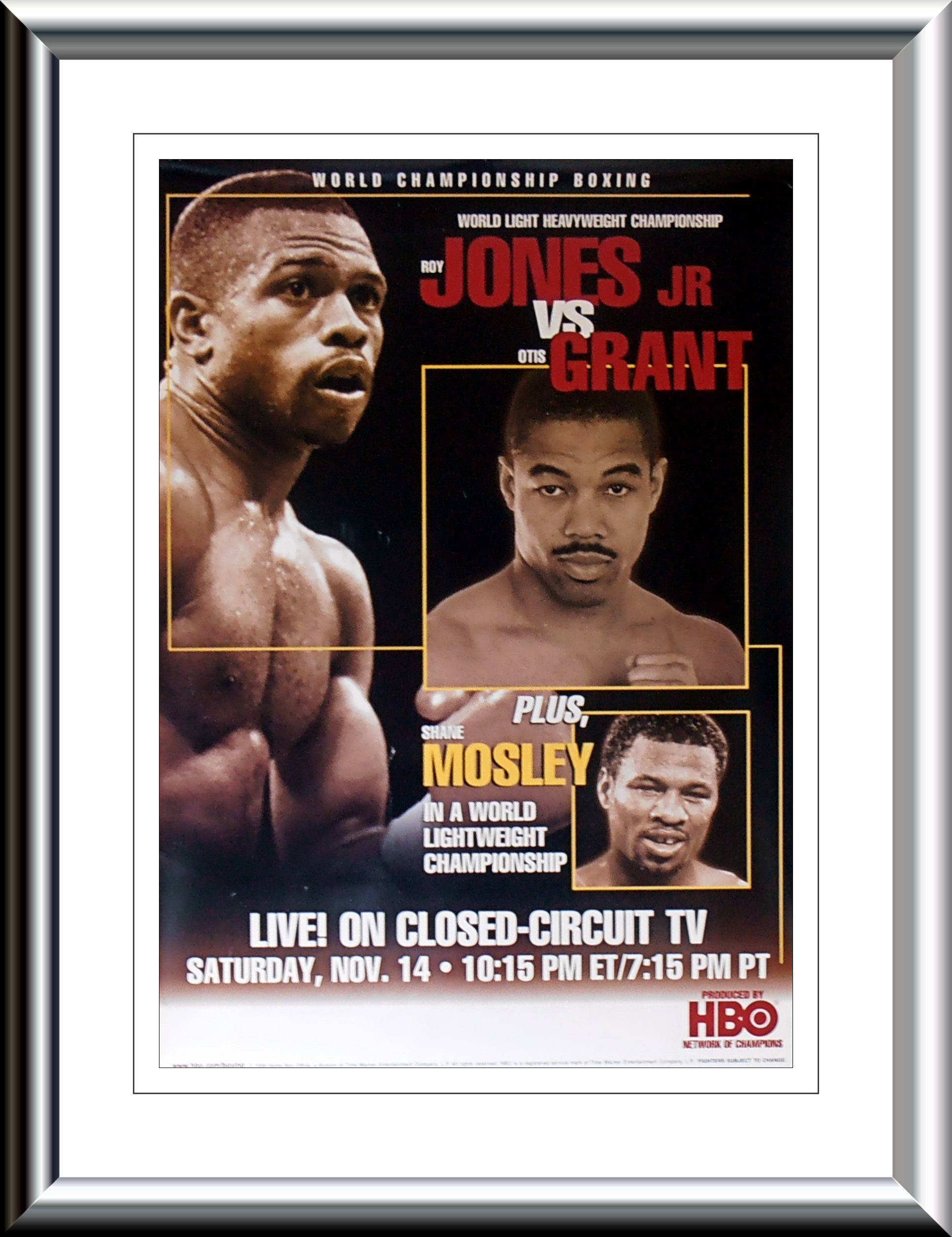 Description : Here we have an original official HBO Boxing closed circuit fight poster for the WBC/WBA world light-Heavyweight Championship title bout held at Foxwoods Resort, Mashantucket, Connecticut, USA, 14th November 1998.