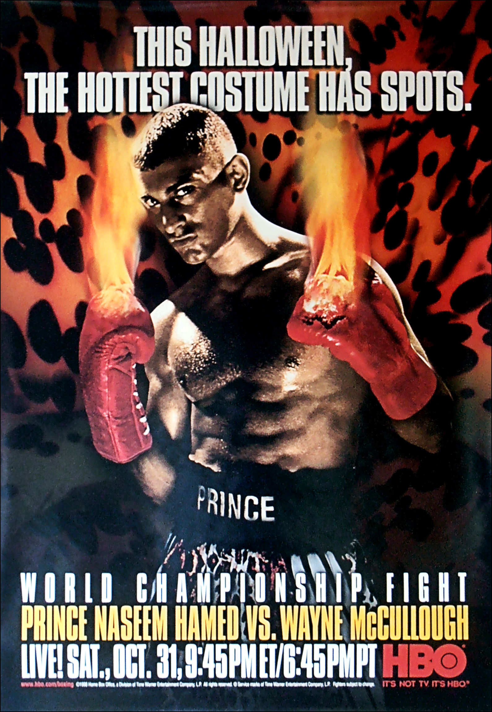 Former WBC Bantamweight Champion Wayne 'Pocket Rocket' McCullough unsuccessfully challenged reigning & defending WBO Featherweight Champion Prince Naseem Hamed in 1998 in a "Fight of the Year" contender, he broke his opponent's lengthy run of KO wins while taking them the distance. Hamed had knocked out 18 opponents straight before McCullough, and was 30-0 at the time with 28 knockouts to his credit. Prince Naz won on points with score totals: | judge: Clark Sammartino 116-112 | judge: John Stewart 118-110 | judge: Nelson Vazquez 117-111.