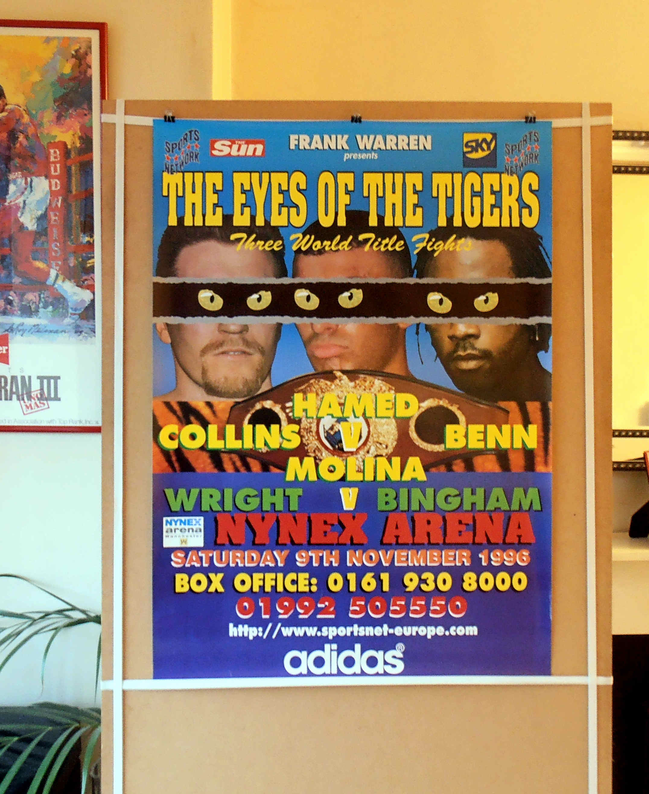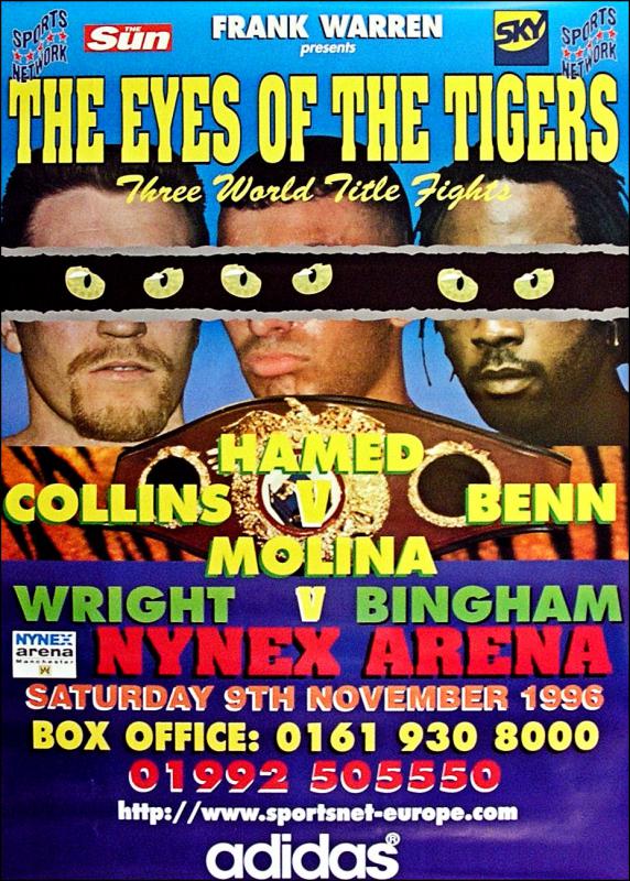 Description : Here we have an original frank warren promotions poster for the WBO Super/Middleweight Title bout rematch held at Nynex Arena, Manchester, England on 9th November 1996.