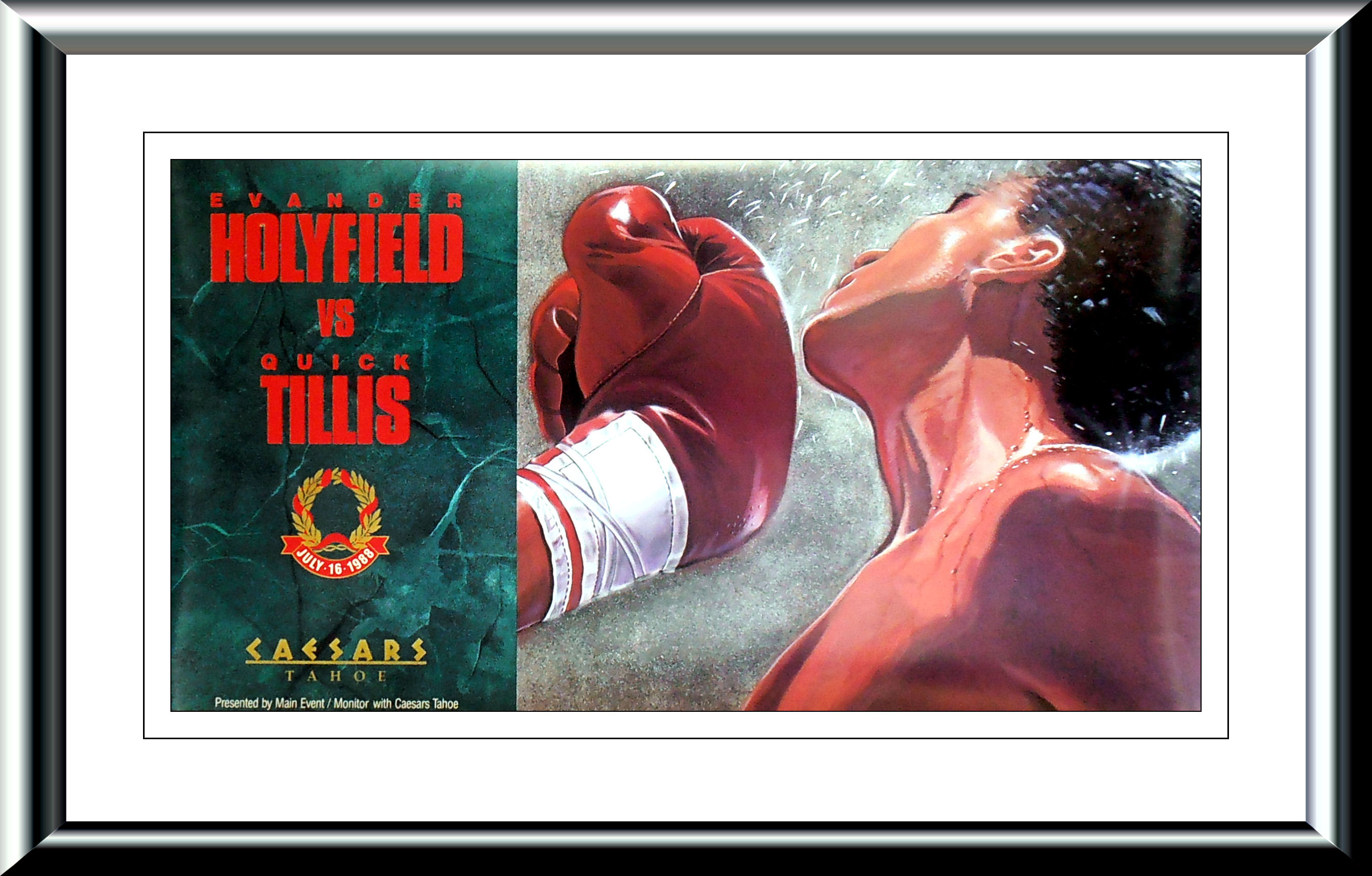 Description : Here we have a vintage official onsite poster for the heavyweight bout from Caesars Tahoe, Outdoor Arena, Stateline, Nevada, USA. 16th July 1988.