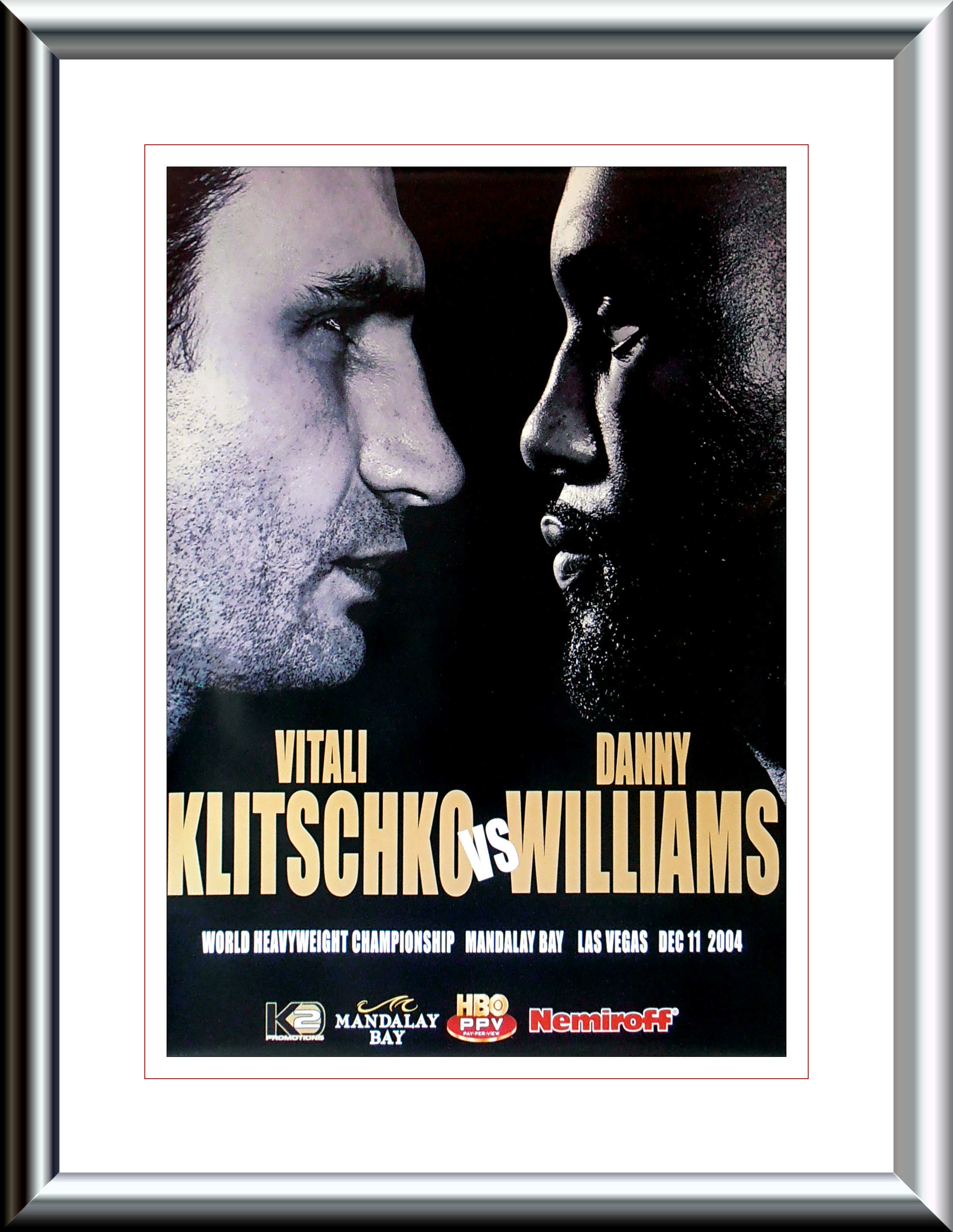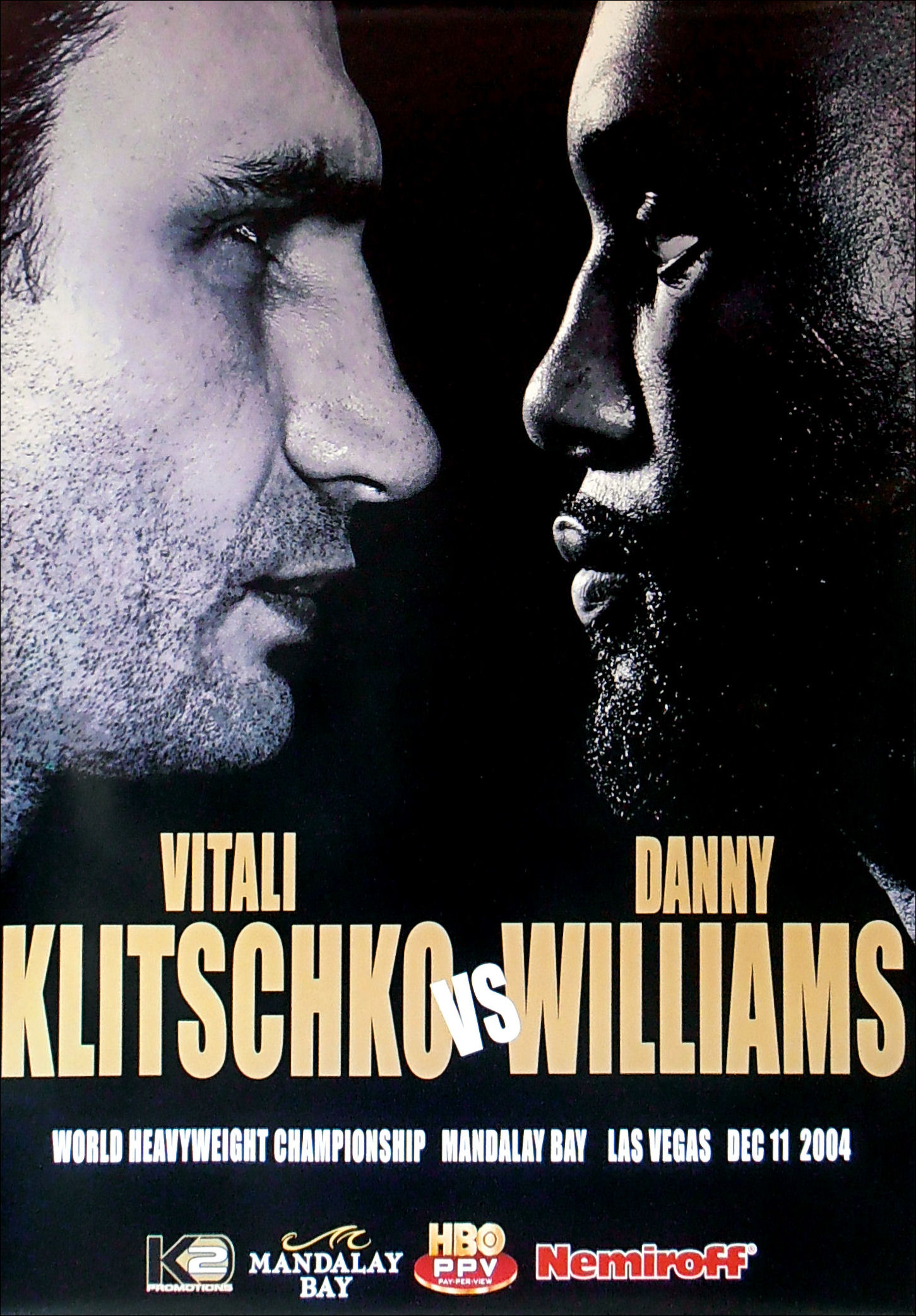 Description : Here we have an original official onsite poster for the WBC world heavyweight title held at the Mandalay Bay Las Vegas between reigning & defending champion Vitali Klitschko & British challenger Danny Williams,11th December 2004.