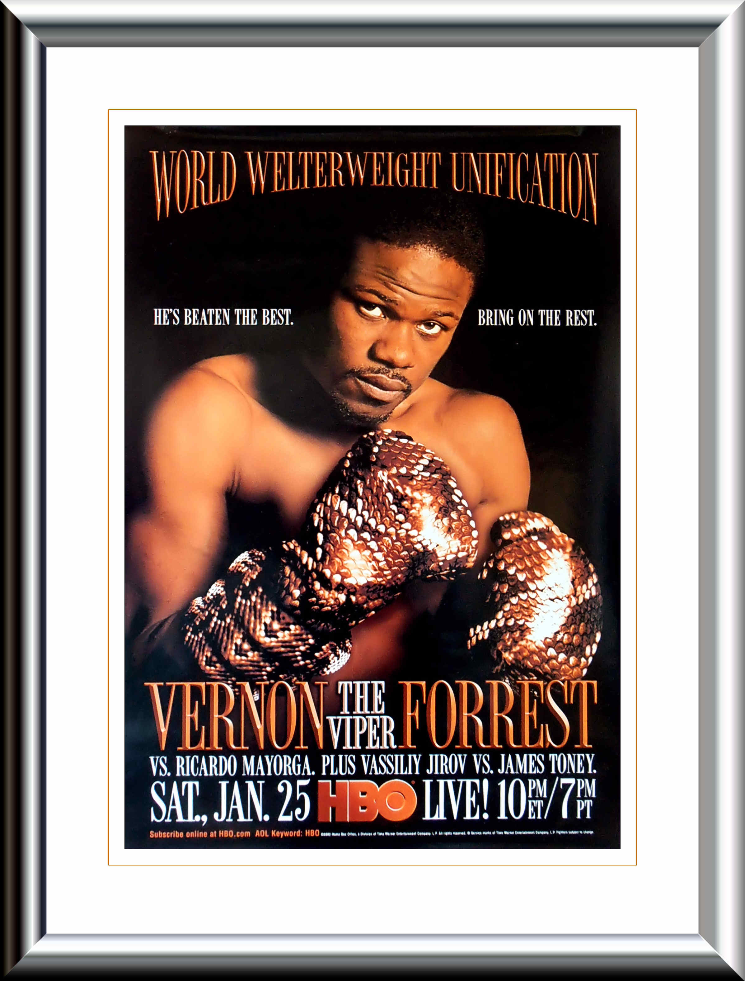 Description : Here we have a superb original full-size HBO Boxing PPV poster for the WBC/WBA world welterweight championship unification bout held at the Pechanga Entertainment Center, Temecula, California, USA. 21st January 2003.