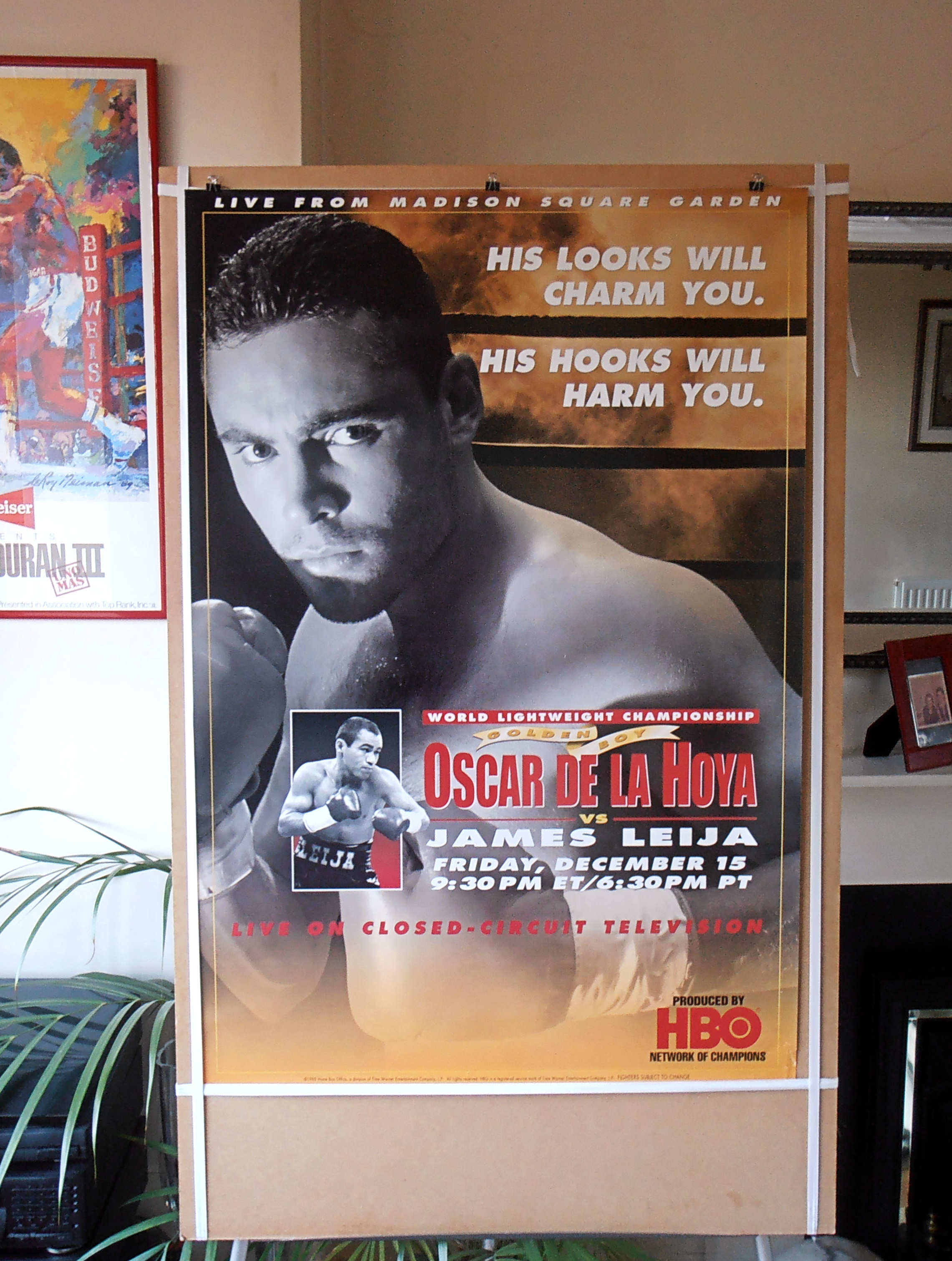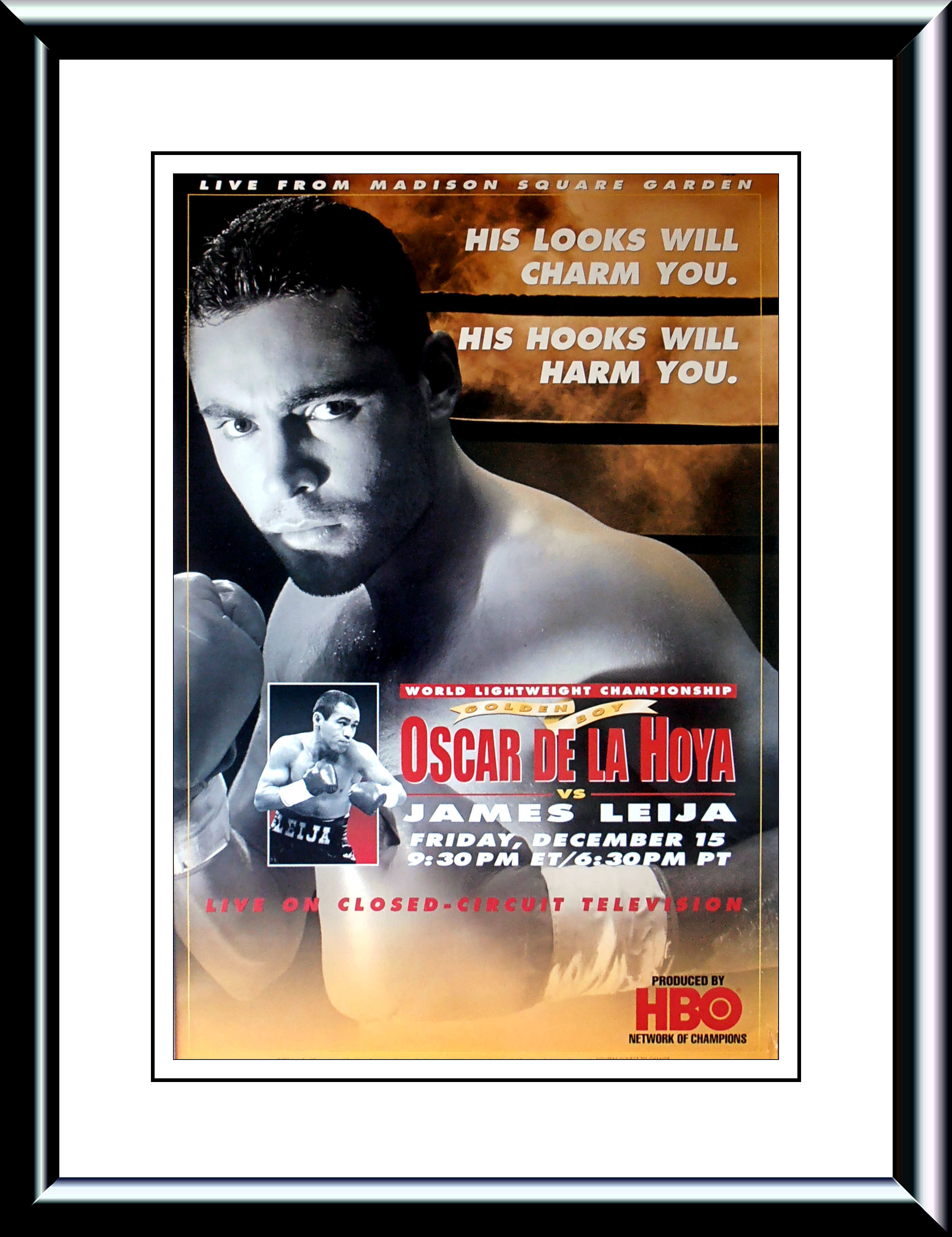 Description : Here we have an original full-size HBO Boxing closed circuit poster from 15th December 1995 for the WBO Lightweight Title fight from Madison Square Garden New York featuring defending champion Oscar De La Hoya & former WBC Super/featherweight champion, granite hard Jesse James Leija.
