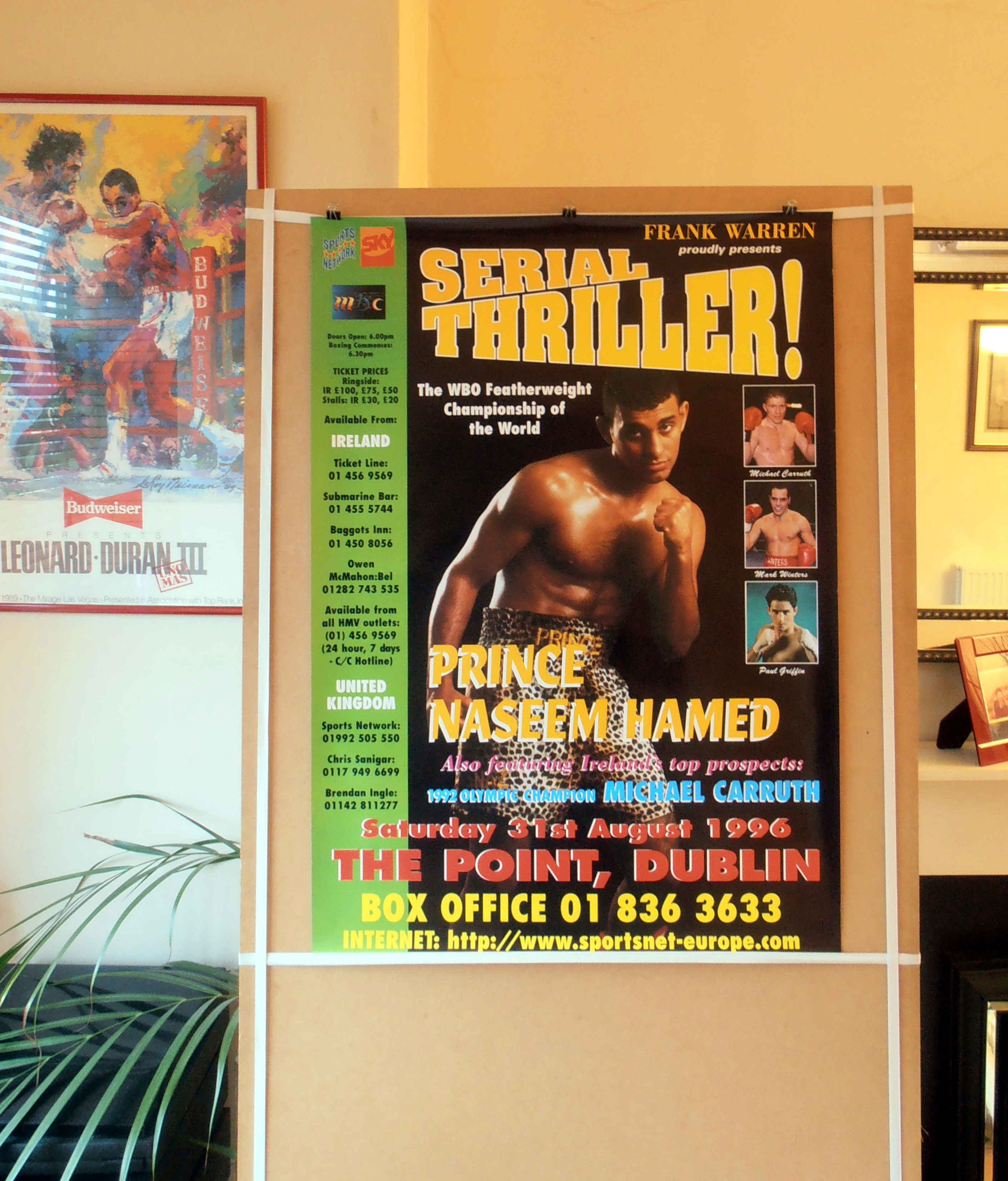 Description : Here we have an original frank warren promotions poster for the WBO World featherweight championship bout held at the 'Point' Dublin, Ireland on Saturday 31st August 1996.