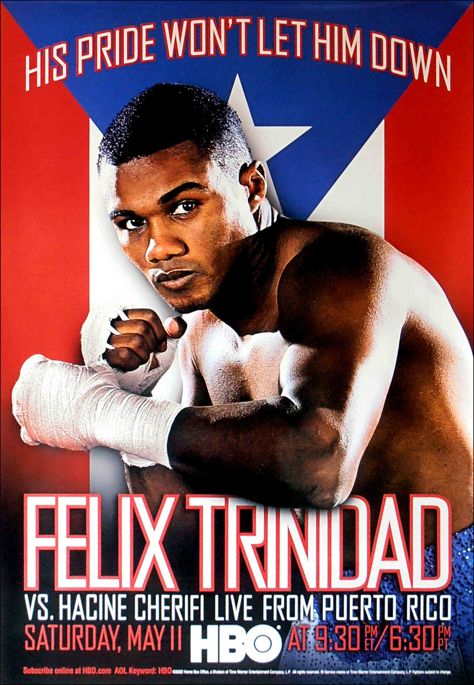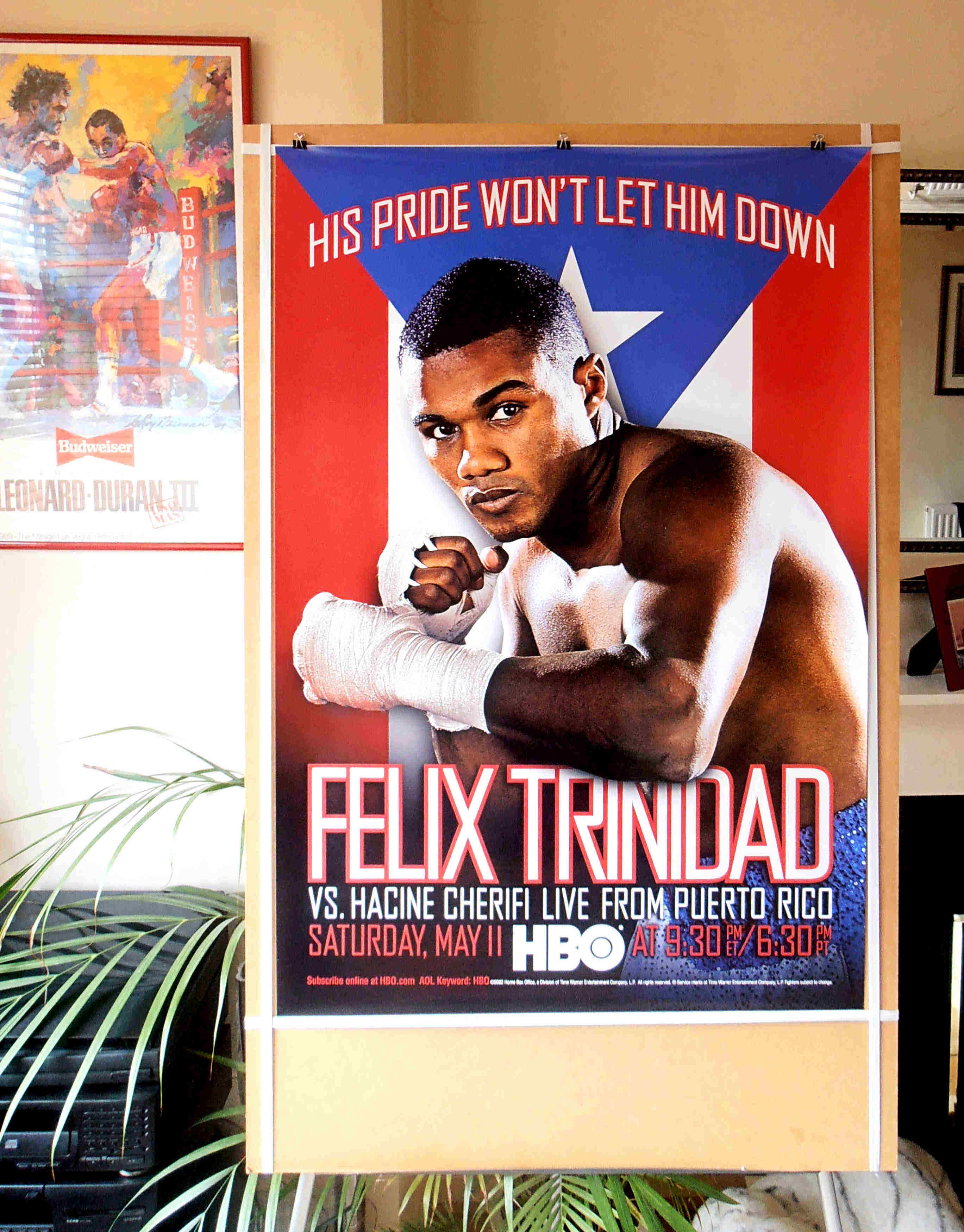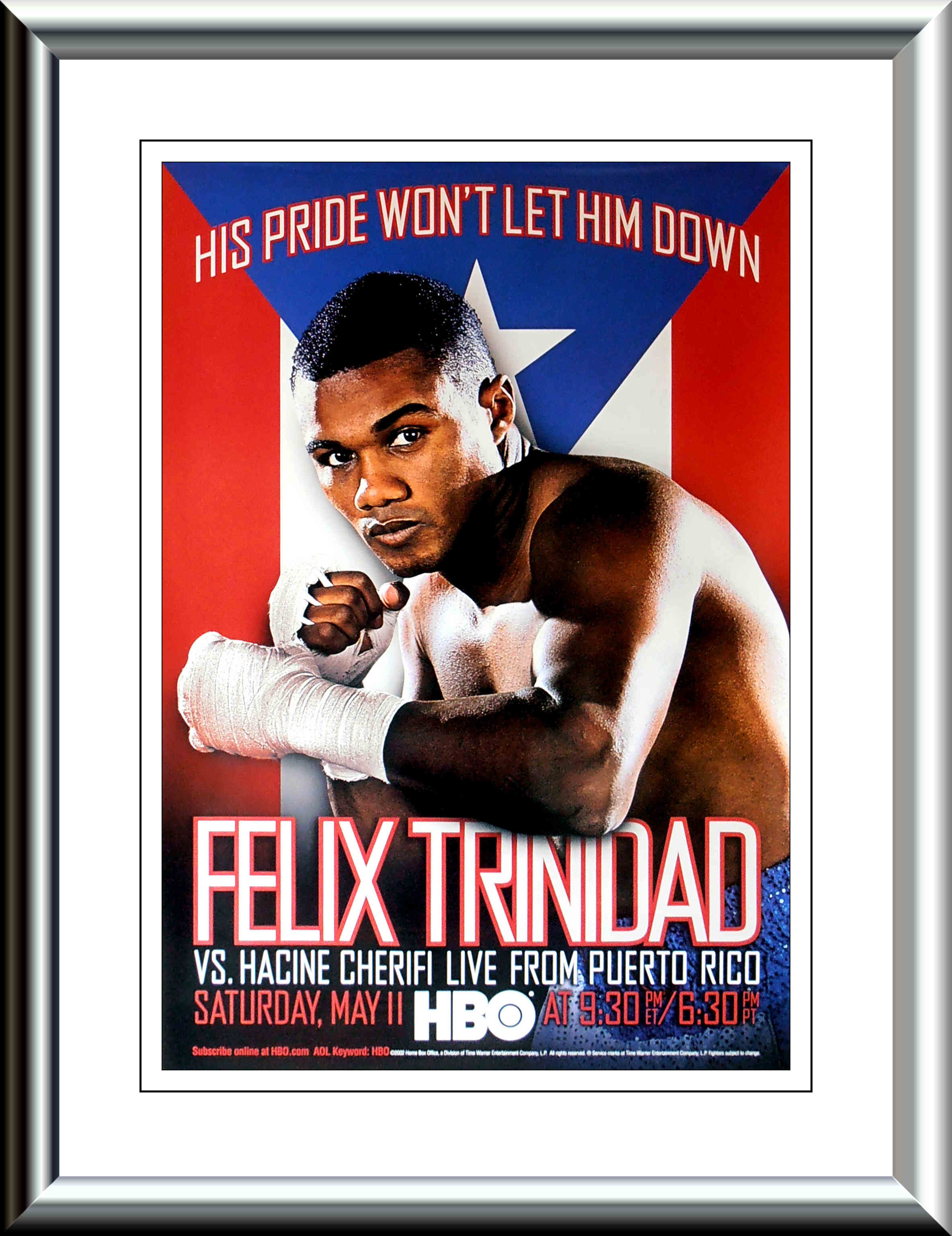 Description : Try finding one of these! Here we have the original full size HBO boxing closed circuit poster for the return of Felix Trinidad after his defeat at the hands of Bernard Hopkins in the middleweight unification tournament.