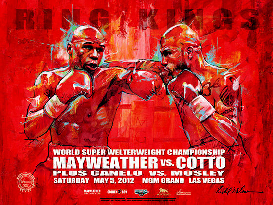 Description : Here is a Superb Limited Edition MGM Grand commissioned On-Site boxing art poster by the celebrated world famous sports artist Richard T Slone. Only 1500 of these posters were produced for this fight & it's one of his best without a doubt, a real collectors piece that would set any wall ablaze.