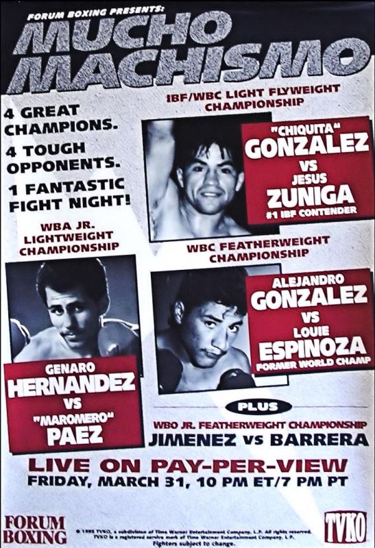 Description : Here we have an original TVKO boxing closed circuit poster for the WBO Super/bantamweight world title bout, at the Arrowhead Pond, Anaheim, California, 31st March 1995