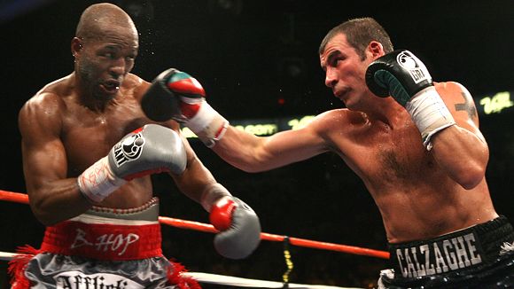 Description : Here we have the official Onsite boxing poster for the showdown between Joe Calzaghe & Bernard Hopkins on 19 April 2008, at the Thomas & Mack Center in Las Vegas, Nevada. Joe Calzaghe defeated Bernard Hopkins to win The Ring Light Heavyweight Championship by a split decision in his first ever fight in the United States. Joe Calzaghe confirmed his stature as one of Britain's greatest boxers with a stunning, if controversial, victory in Las Vegas. His points victory over the wily old veteran Bernard Hopkins was not pretty and it was not even decisive, but somehow the 36-year-old Welshman recovered from a first round knock-down to gain a split decision verdict that will rank as one of the grittiest performances by a Briton fighting away from home.