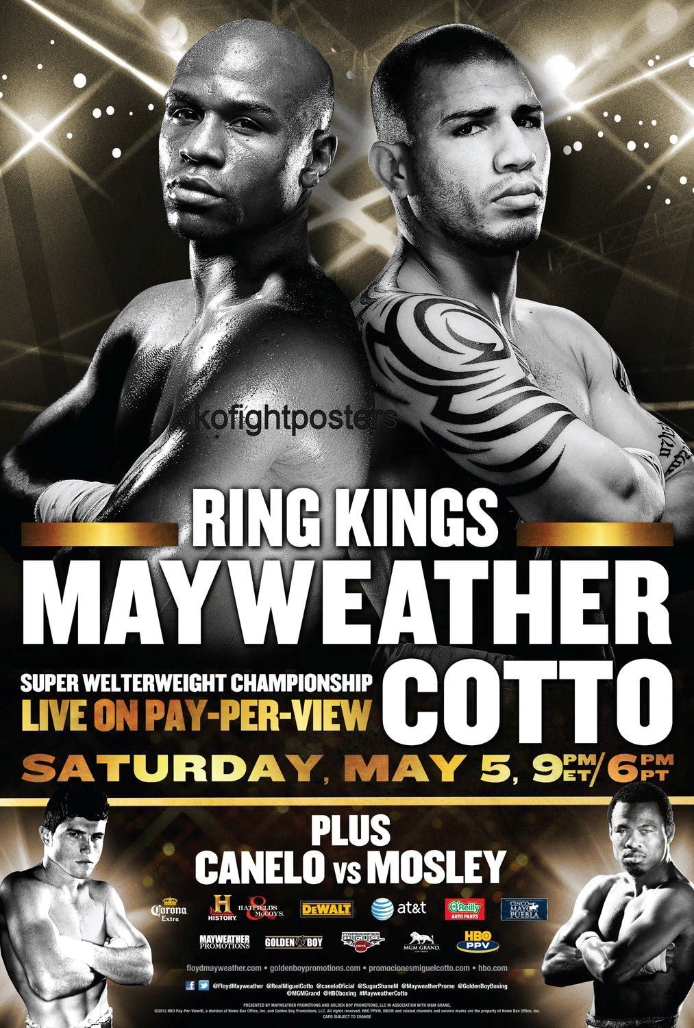 Description : Here we have an original full-size official HBO pay-per-view closed circuit boxing fight poster for the WBA world light middleweight championship title bout held at the MGM Grand, Las Vegas, Nevada, USA, 5th May 2012.