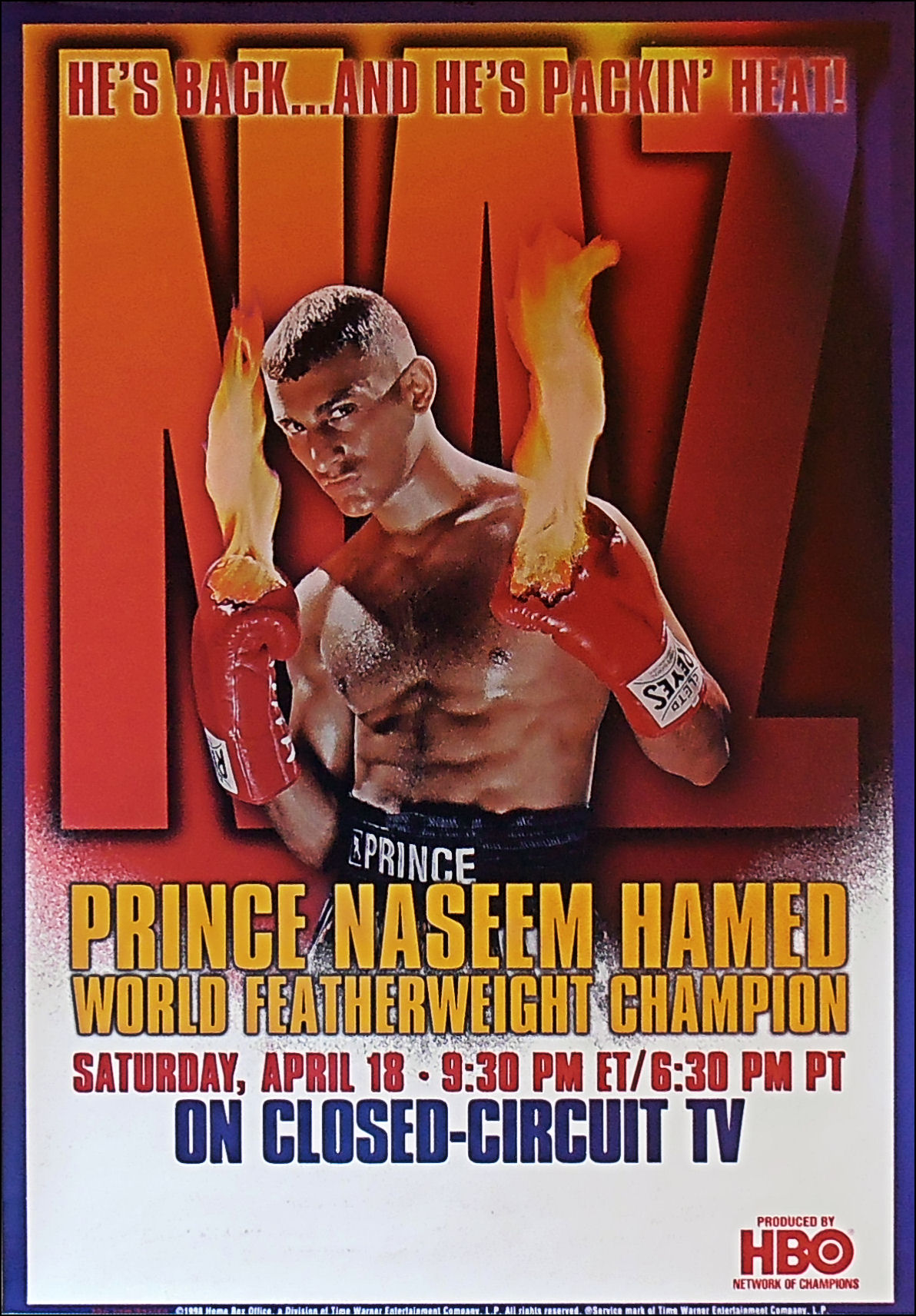 Description : Here we have an original HBO Boxing closed circuit poster for the WBO featherweight title bout held at the Nynex Arena, Manchester, England on 18th April 1998.
