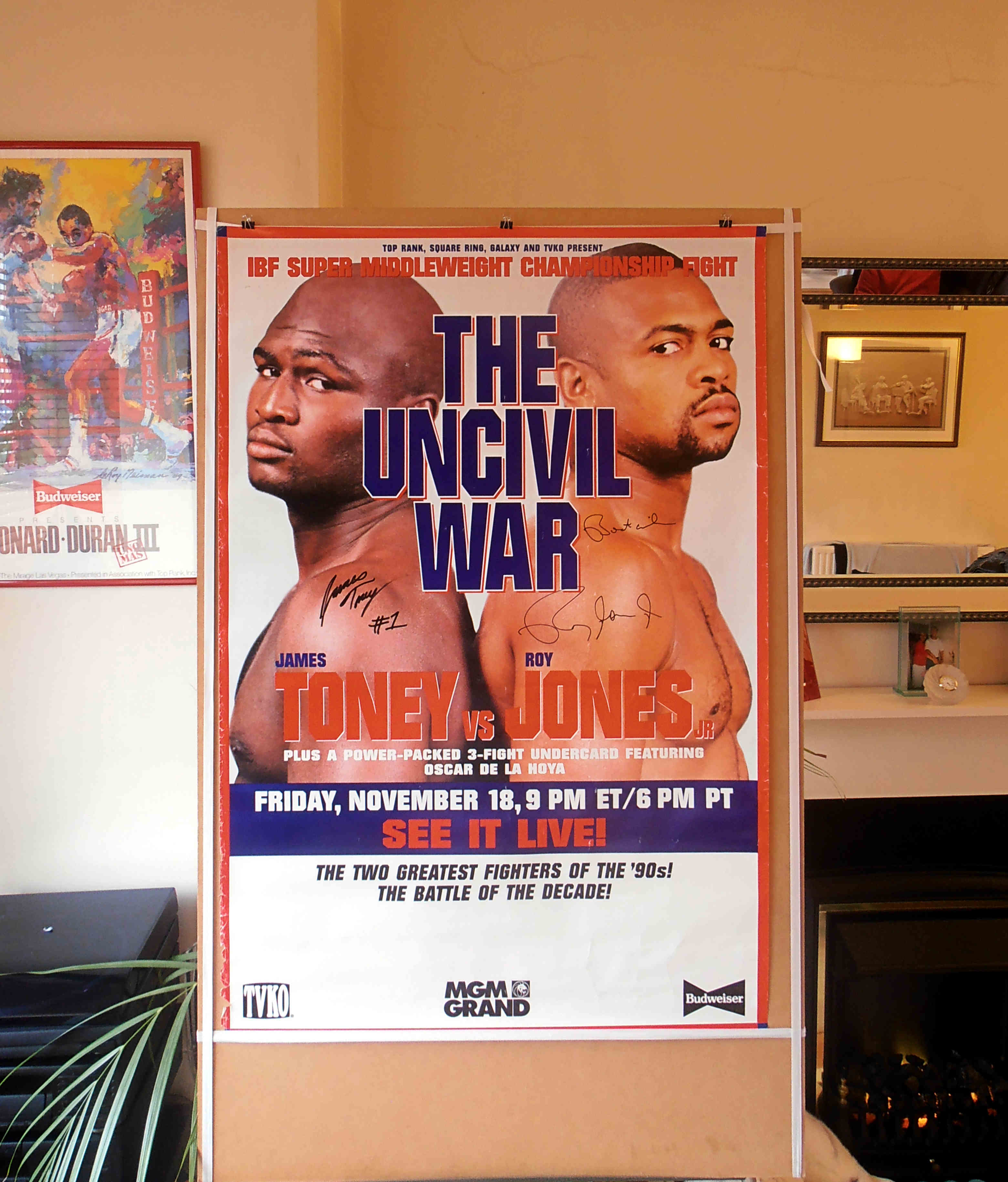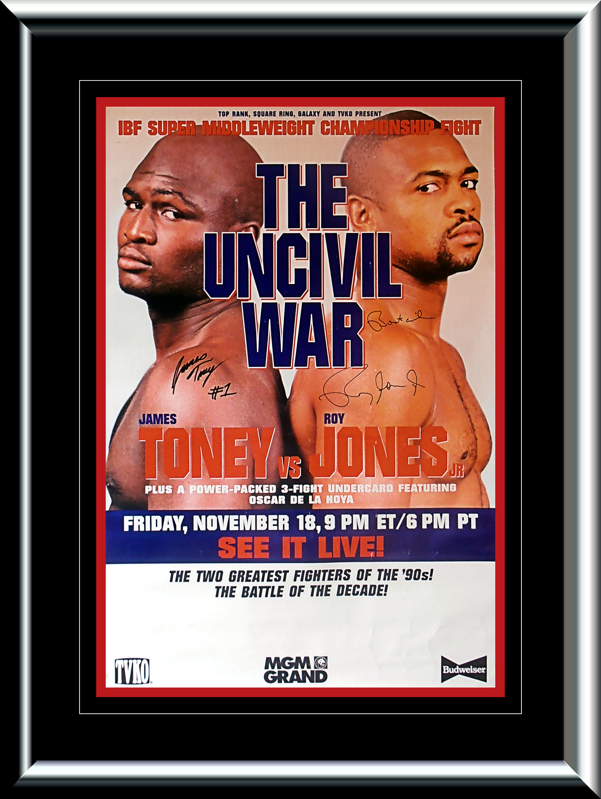 This battle was for the IBF Super/Middleweight Title & was expected to be fiercely contested but Roy Jones Jr put on a boxing clinic to totally subdue the master craftsman James 'Lights Out' Toney. Though Toney came into the fight as the slight favorite, he struggled to get down to the required weight of 168 pounds, and as a result appeared sluggish throughout the match. Jones dominated nearly the entire fight and won a unanimous decision.