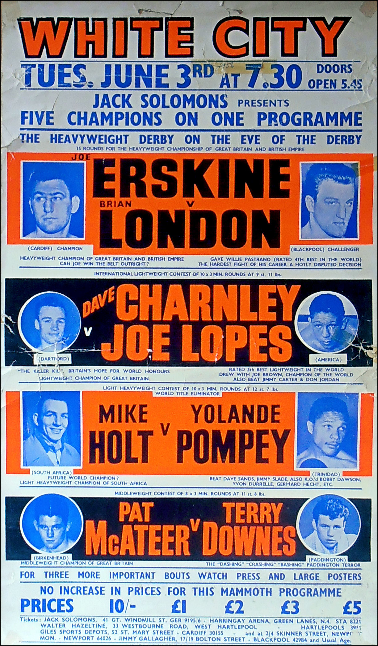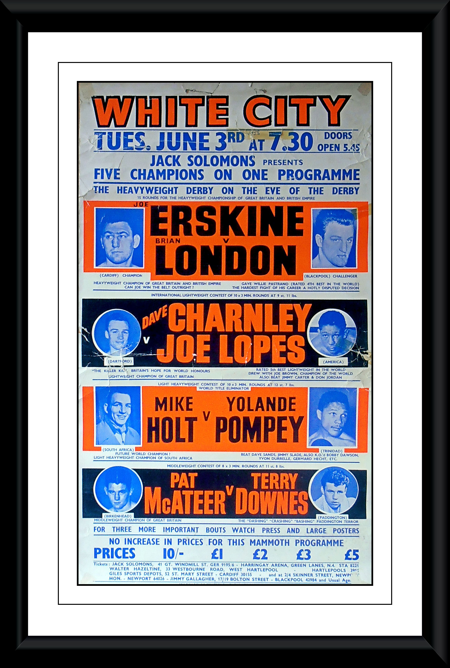 Description : Here we have an exceptional super rare poster from the 1950's, headling the Boxing Stars of the day & future world champions. It's probable that very few of these posters now exist from that famous bygone era of British boxing.