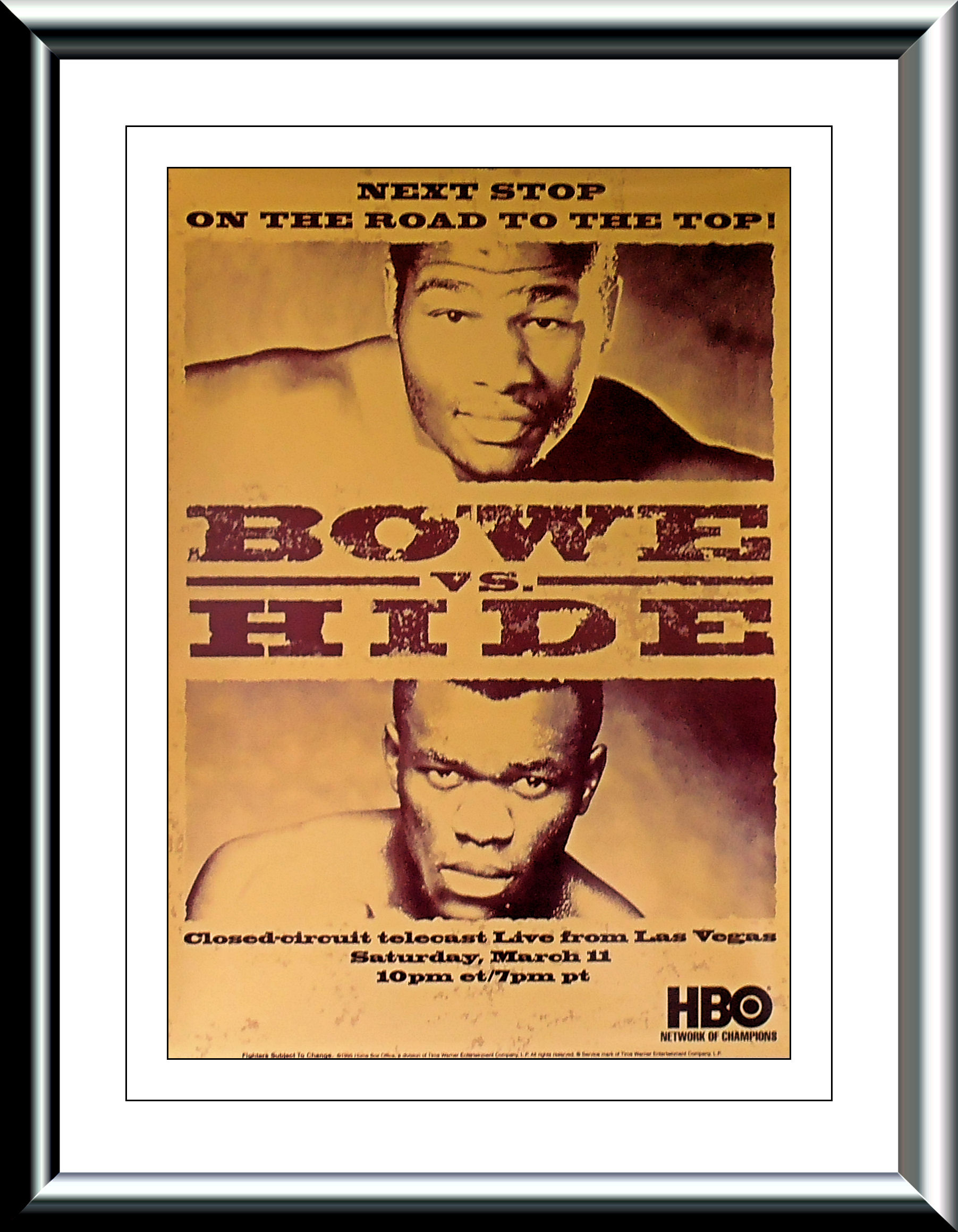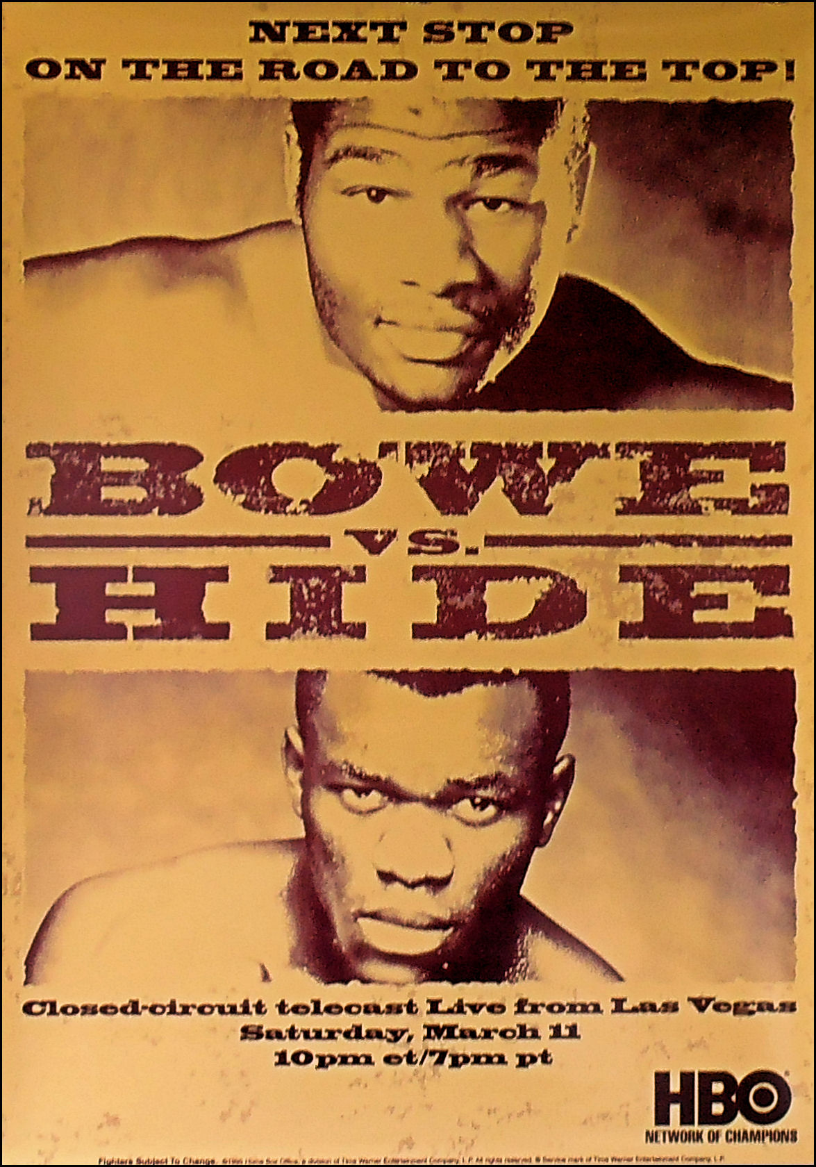 Description : Here we have an original official HBO boxing closed circuit fight poster for the WBO world heavyweight title bout held at the MGM Grand, Las Vegas, Nevada, USA, 11th March 1995.