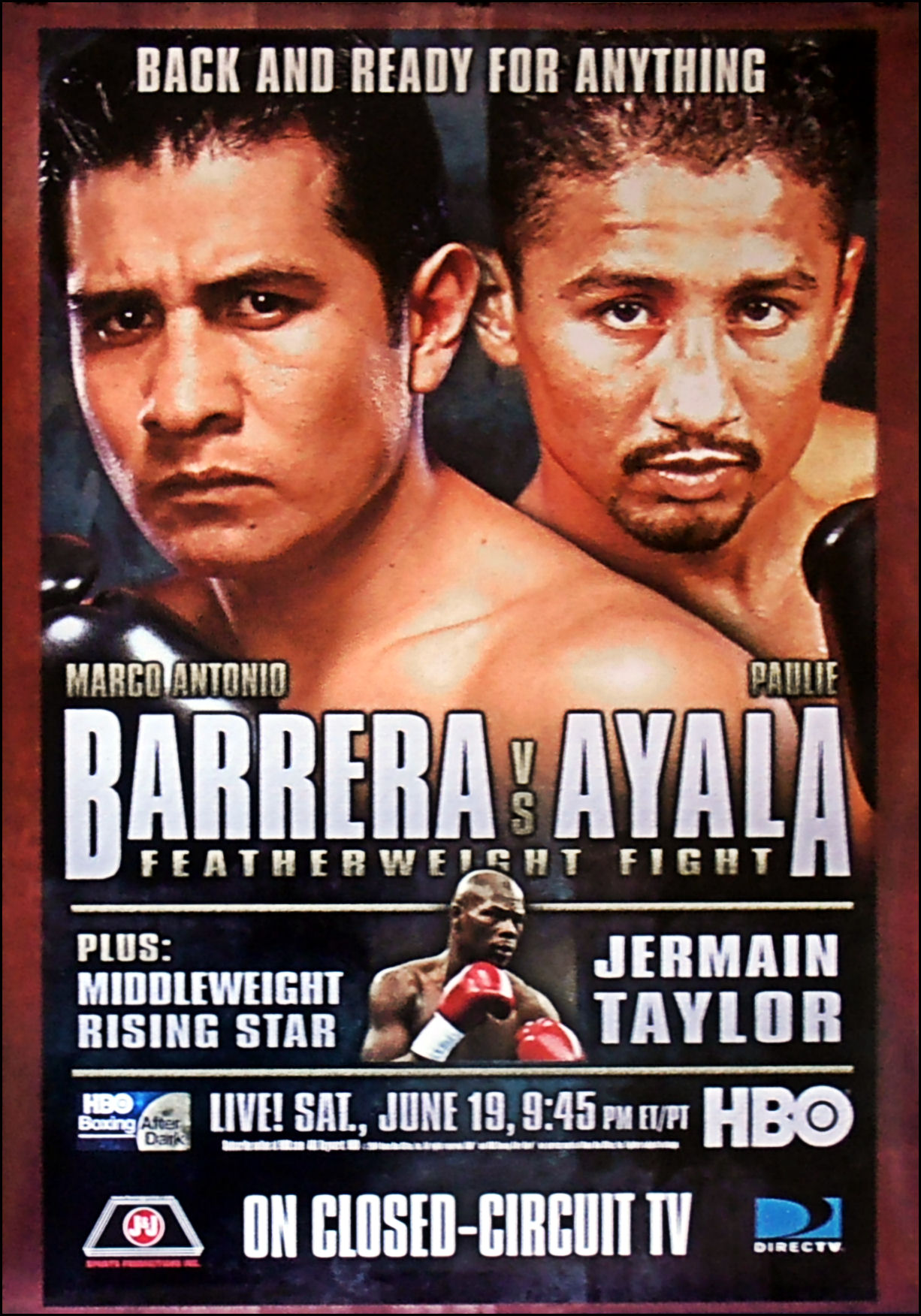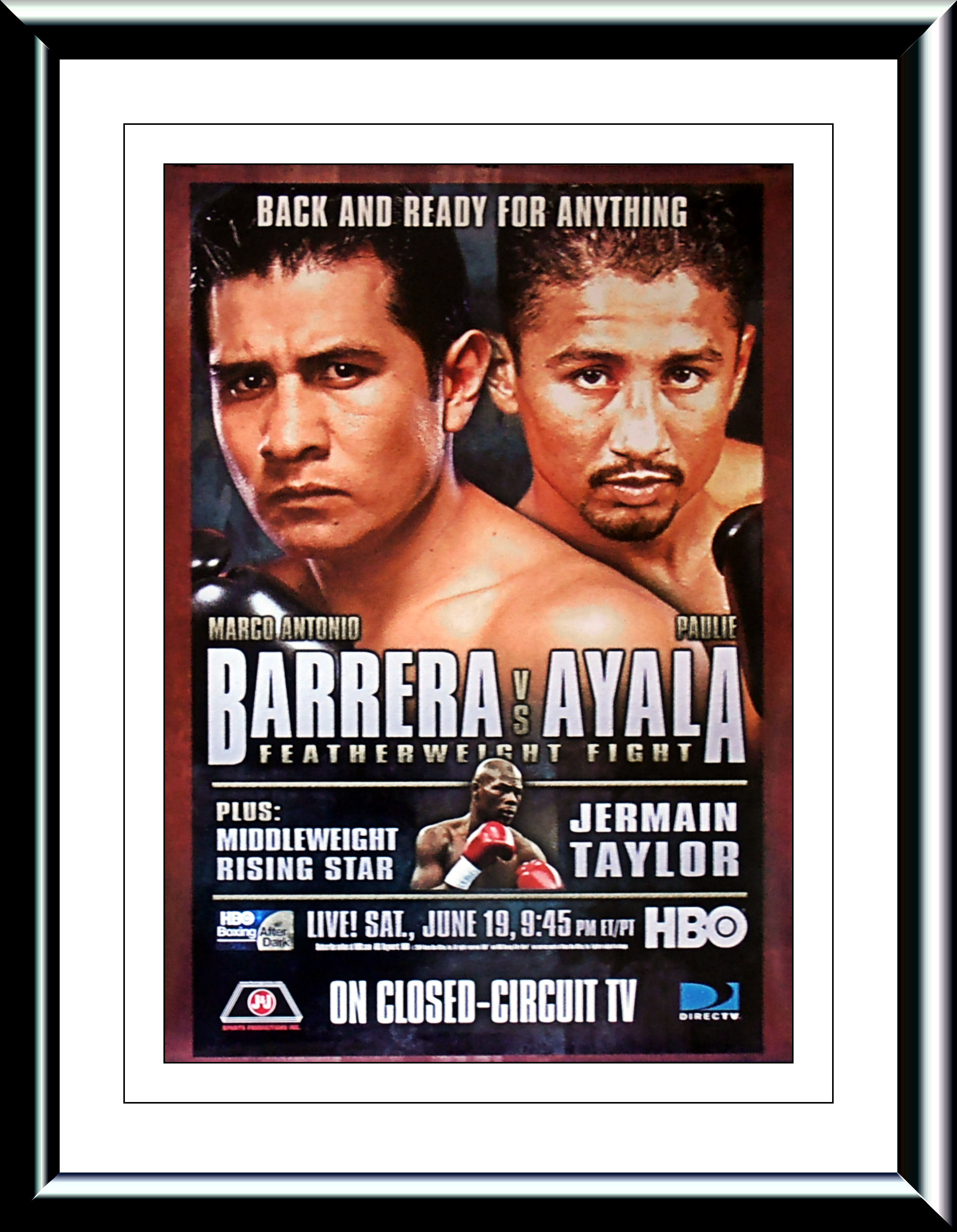 Description : On June 19, 2004, Barrera defeated former WBA Bantamweight title holder Paulie Ayala in Los Angeles by a tenth round knockout. Here we have the original HBO poster used to promote the fight, these posters were only supplied to participating HBO outlets & not made available for public consumption hence a must have for any discerning poster collector.
